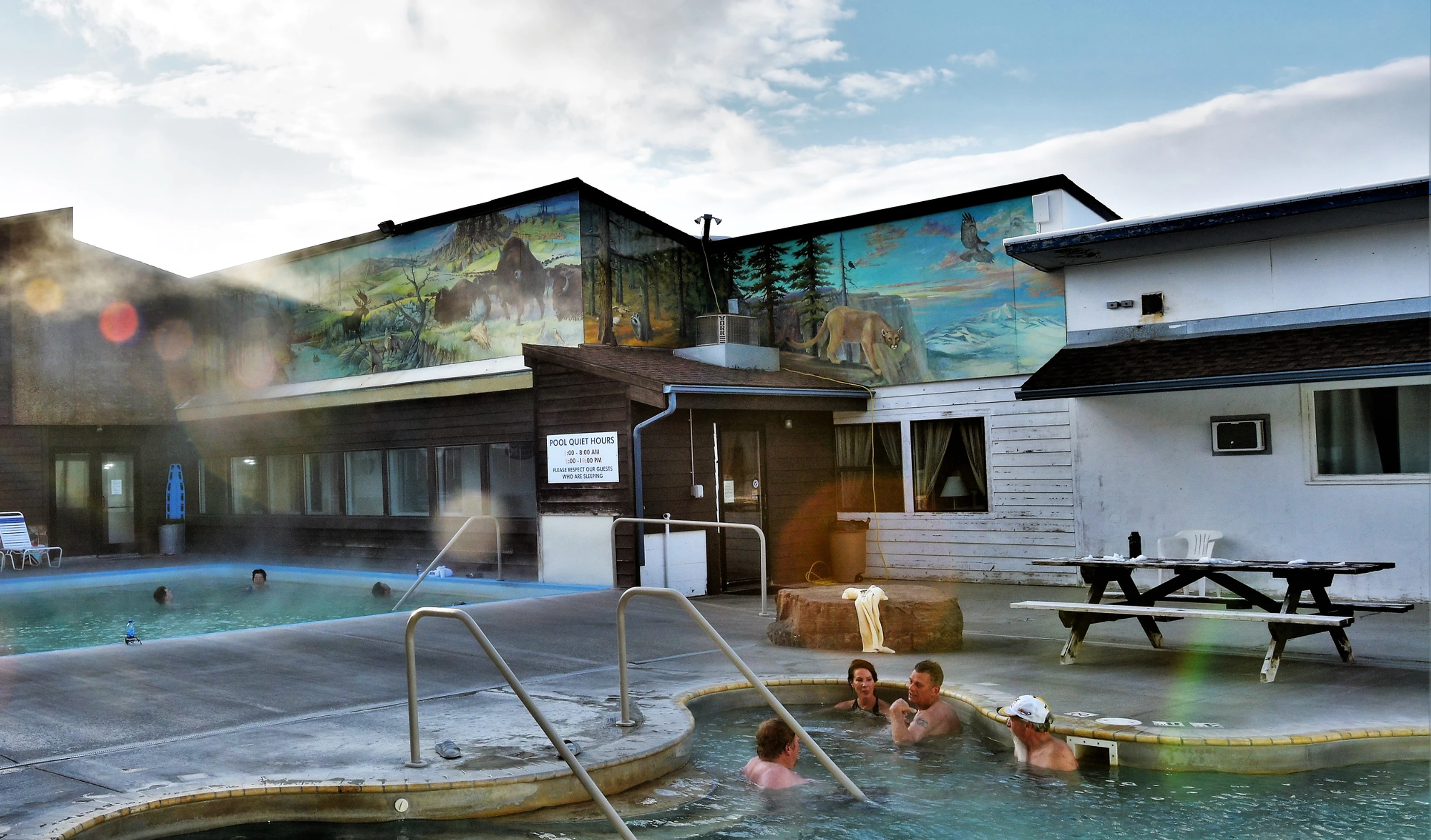 Book a luxury herbal wrap in the day spa, dine in a classic historic restaurant or pool side, unwind with live music in the Saloon, and soak up some vitamin D and healing vibes in the outdoor pools. The large outdoor swimming area is heated at a comfortable 96 degrees, with a covered soaking pool with hotter temperatures. Surrounded by views of the Absaroka Mountains and Emigrant Peak, this is the perfect hot springs experience to combine with a day trip to Yellowstone.