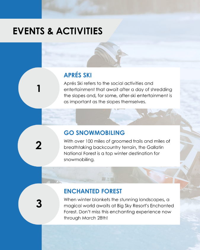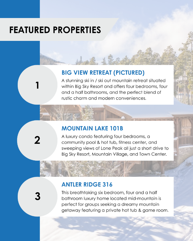 Local's Tip: Please feel free to use and reference this vacation guide to help plan your trip to Big Sky this month!