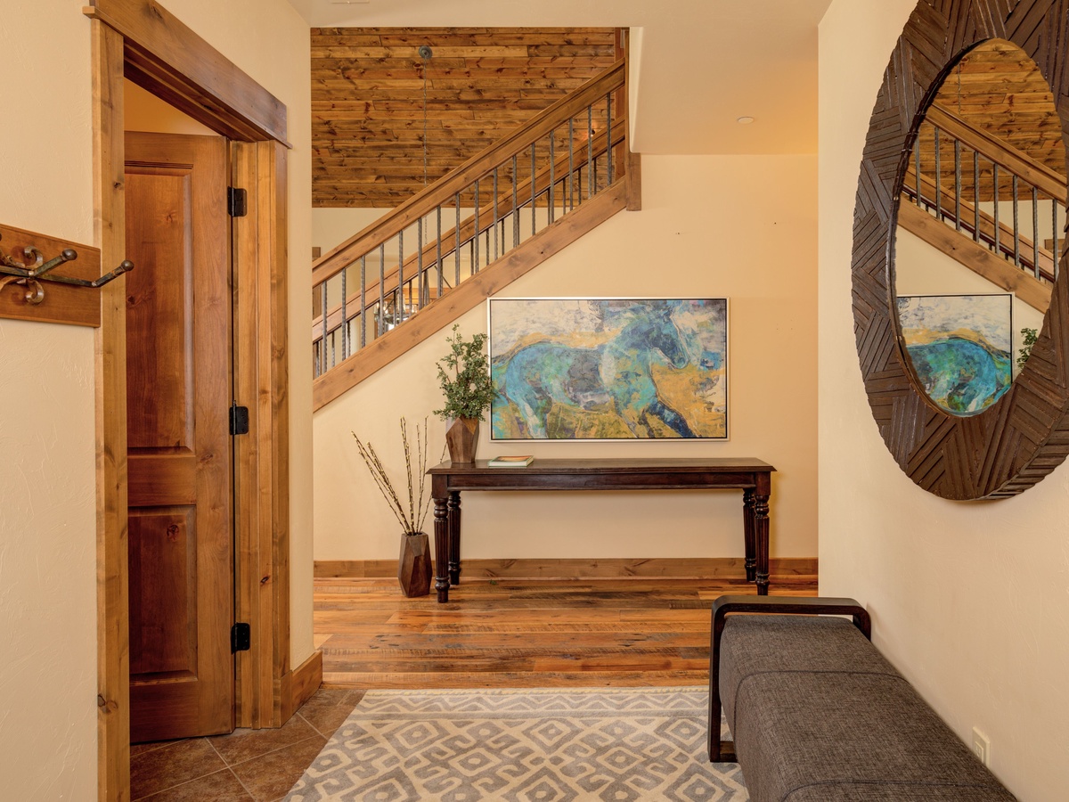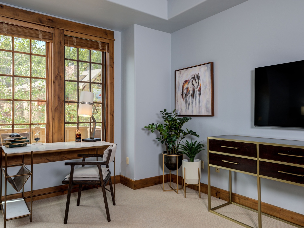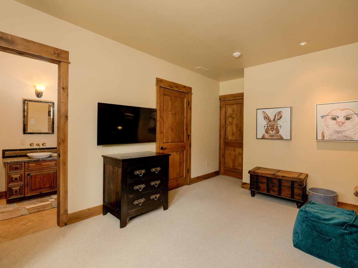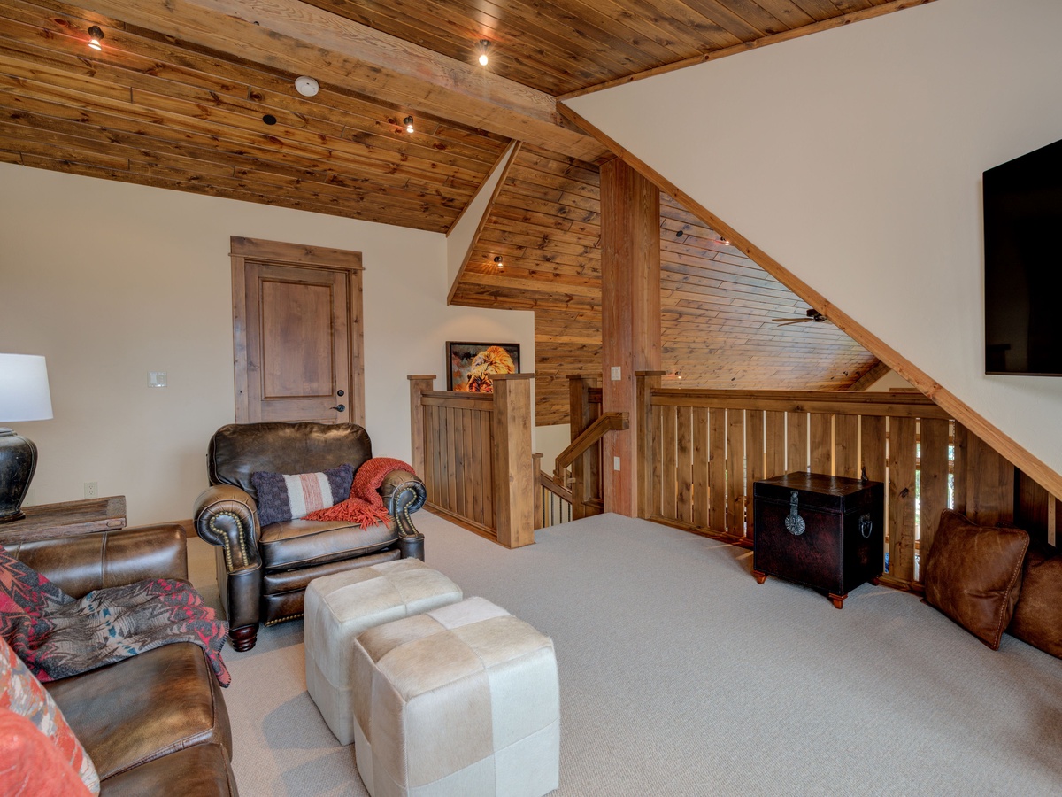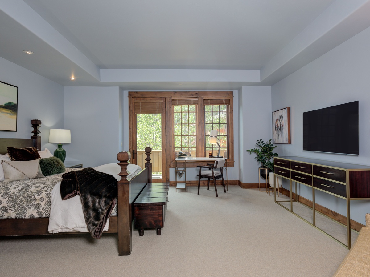 This 3,500 sq ft luxury suite has ample to space to comfortably sleep 15 guests with three en-suite bedrooms on the main level and an upper-level loft room with private balcony and beautifully framed views of Lone Peak.