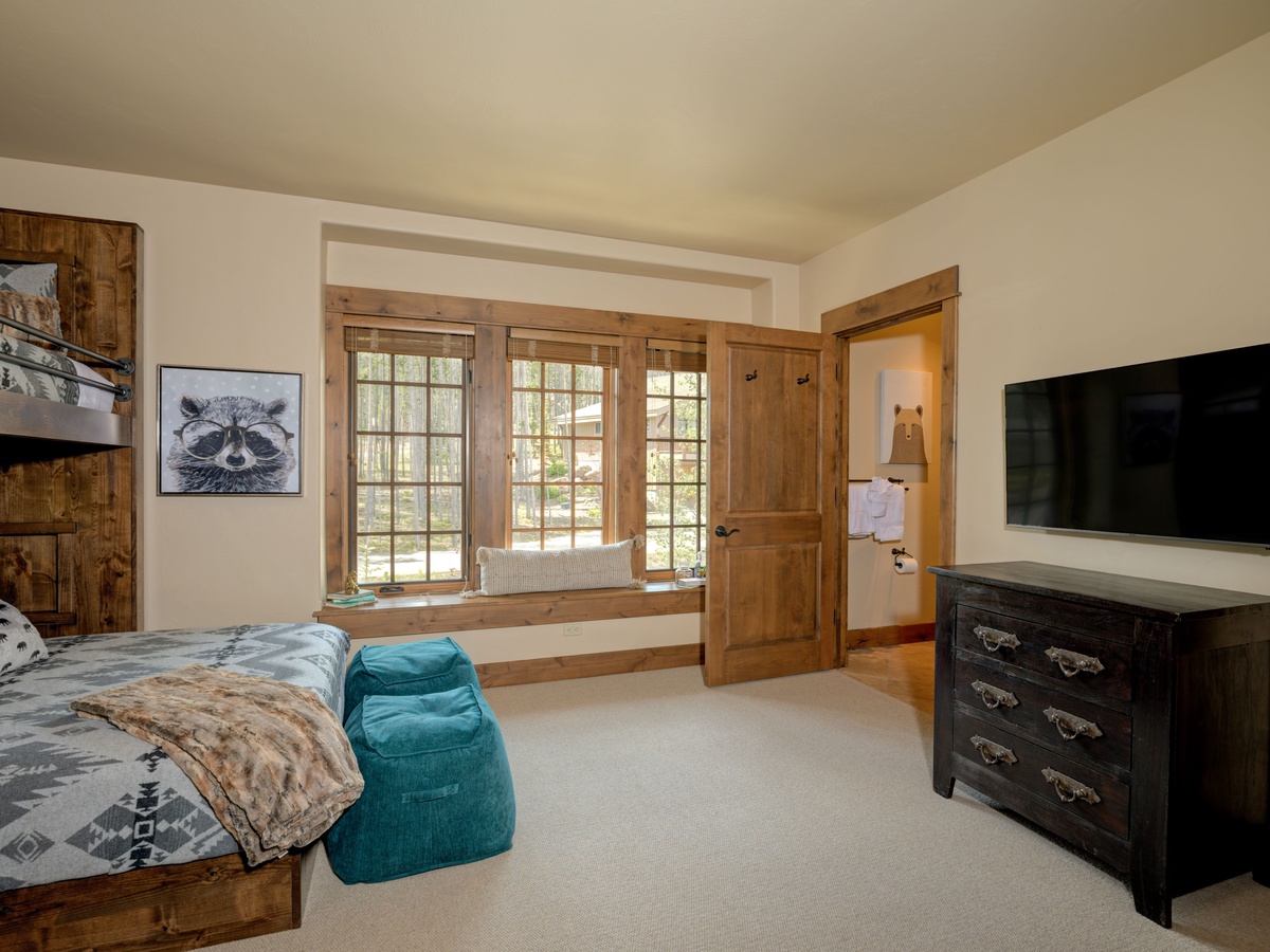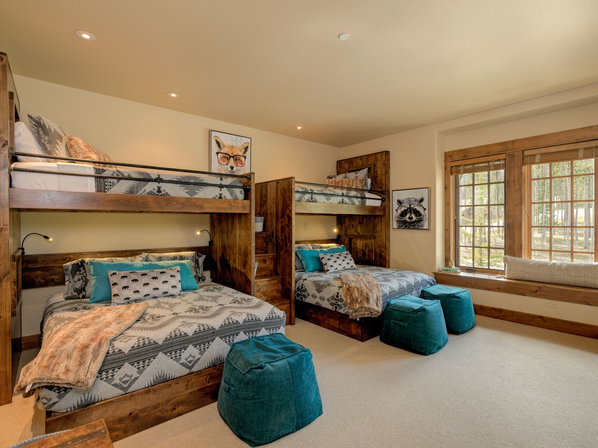 Bedroom 3- Two Queen beds with Twin beds lofted above | private full bath, shower/tub, toilet, sink | main level