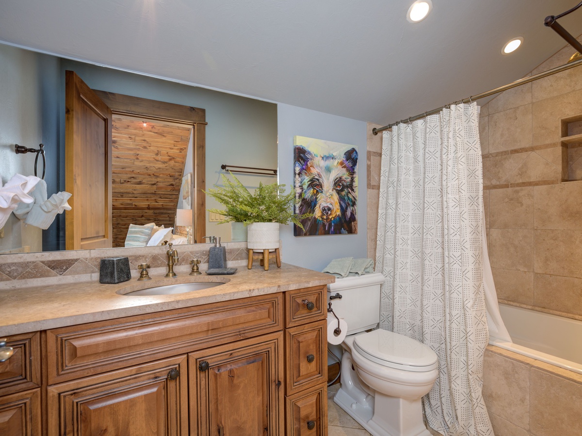 Bedroom 4- Queen bed w/twin trundle | private full bath, shower/tub, toilet, sink | upper level