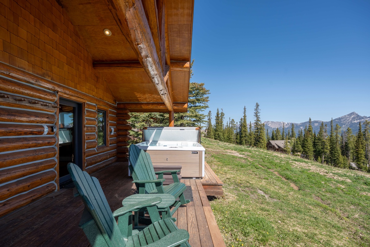 Standing on this cabin's front porch, I immediately realized, ski-in/ ski-out would never be the same. 6 steps off the porch and you are on a groomed connector run. Look up from that beautiful snow and you have limitless views of the Spanish Peaks. The cabin's TRUE ski-in/ski-out convenience spoiled us skiing-in for a fireside lunch was easier than packing an on-mountain lunch...and immensely more relaxing. Leaving in the morning was a dream. Get dressed. Pop on toasty warm boots. Lock the door. Click in skis and go. Really. That simple. A nice little cabin-dotted groomer warmed up our legs SUBSTANTIALLY more fun than warming up my legs walking crowded pavement just to get to a gondola. The cabin itself was great. The interior is relaxed mountain chic. Translated: all family room furniture will suck you in with high nap potential. The kitchen was well outfitted for a week of in-cabin cooking. Vaulted ceilings throughout really did a great job of giving an overall airy, contemporary feel. Warm tones and exceptional thermostat coverage kept it cozy. Undoubtedly though, it was the hot tub that won my skier heart. 5 feet out the front door awaits covered, steamy nirvana. Apres-ski was never better. Spectacular mountain peaks filled the view. An ongoing, serious daily lift ride topic was, Which Reigns Supreme: The Ski-In Soak, The Sunset Soak OR The Snowy Night Soak . Discuss amongst yourselves. Customer service was a real feature with this rental, too. It was delightful to work with professionals who have exacting standards with their properties. Everything from booking to arrival was effortless. Wifi signal was great all week (laptops and iphones). An additional nice touch was the cleared parking and walkways. I am so glad that we rented here. I had complacently accepted further and further distances being defined as ski-in/ ski-out that ended at Cowboy Heaven. I have never returned from a ski trip feeling so relaxed. Moonlight Basin offered nice terrain for all types. Zero lift lines. Empty runs. Fresh snow for DAYS. And, again, all this just steps from this cabin's front porch. Add amazing views. And that hot tub. It added up to a trip like no other for us.- Anonymous , Posted: 10/01/2020
