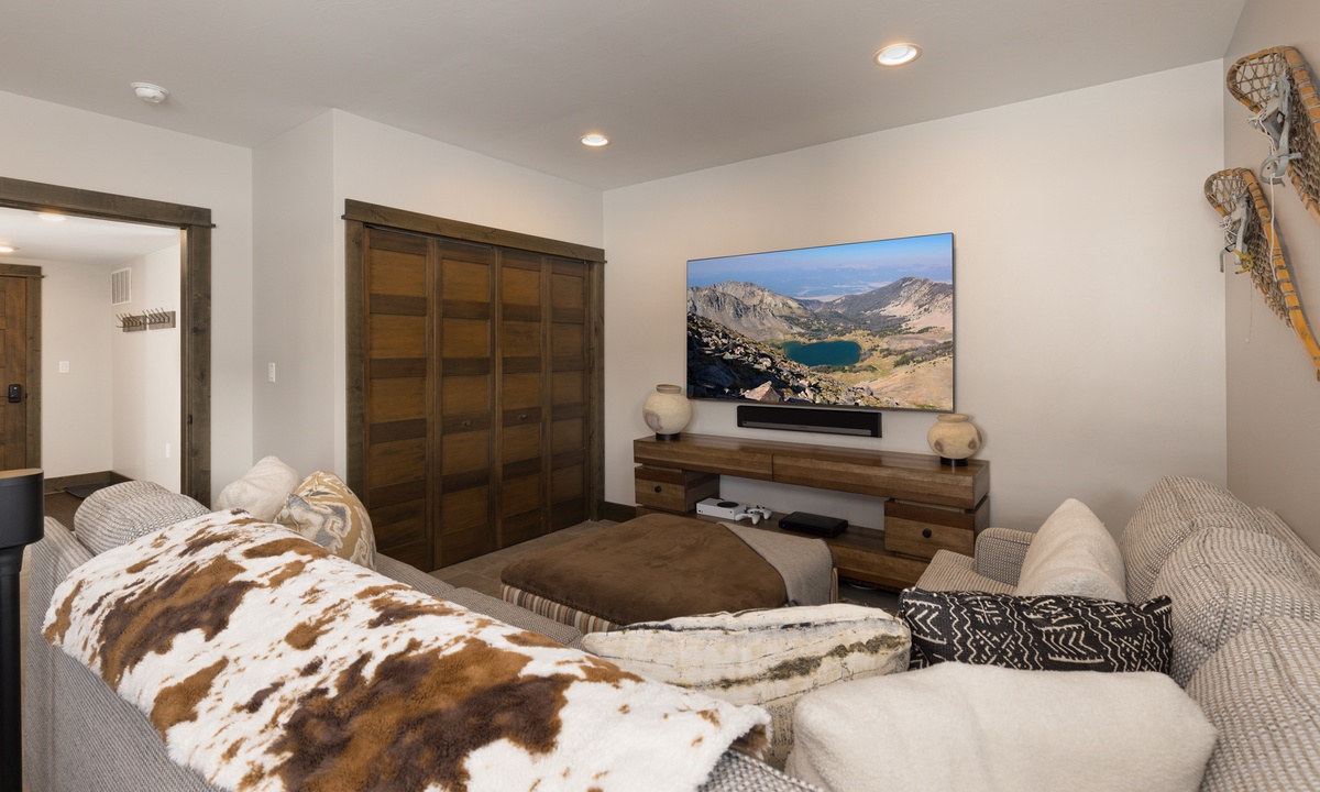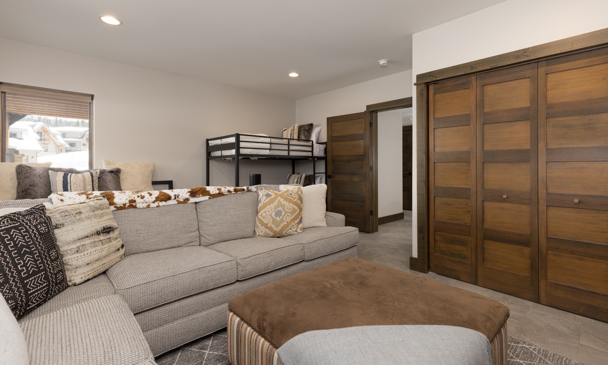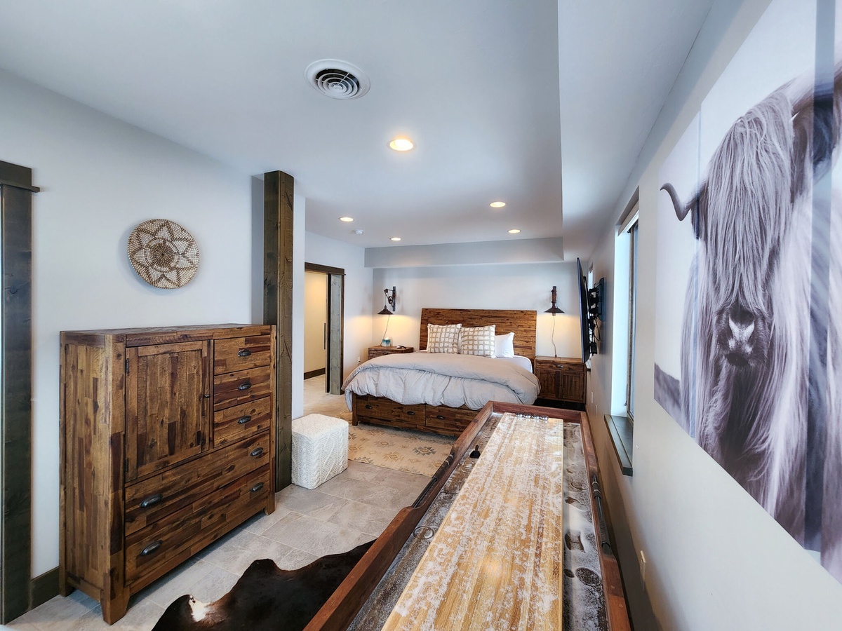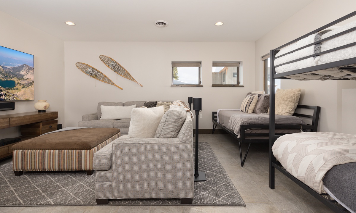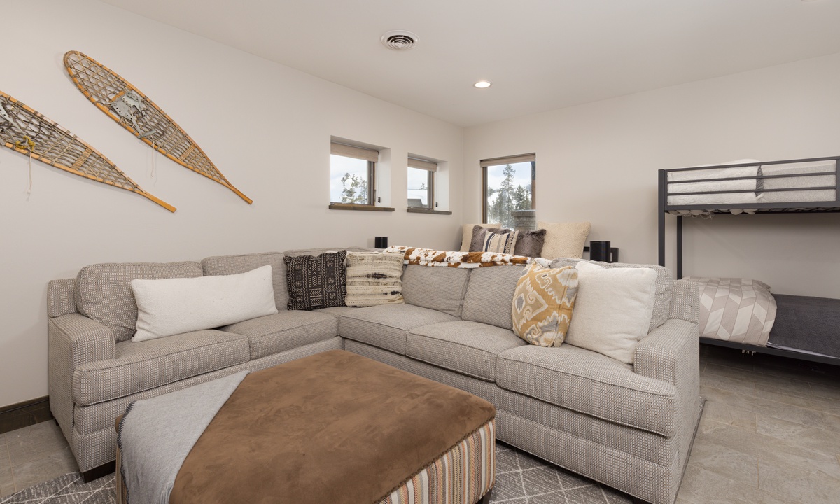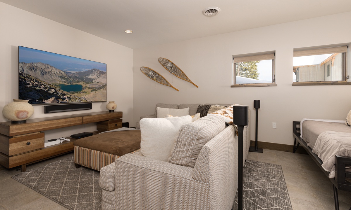 This 3,500 sq ft chalet has ample square footage for the whole crew boasting five tranquil bedrooms, a spacious bonus games room with sleeper sofa and extended outdoor living. This chalet has a unique conversion for extra living/play space for your group. A six bedroom with a sixth sleeping space in the lower level that converts from game room/TV room during the day into an extra bedroom at night when using the sleeper sofa in this area. Surrounded by evergreens and Big Sky peaks, outdoor living is a dream. From warm-weather BBQs on the main deck to luxurious hot tub soaks amidst the pines, this Big Sky luxury rental will not disappoint.