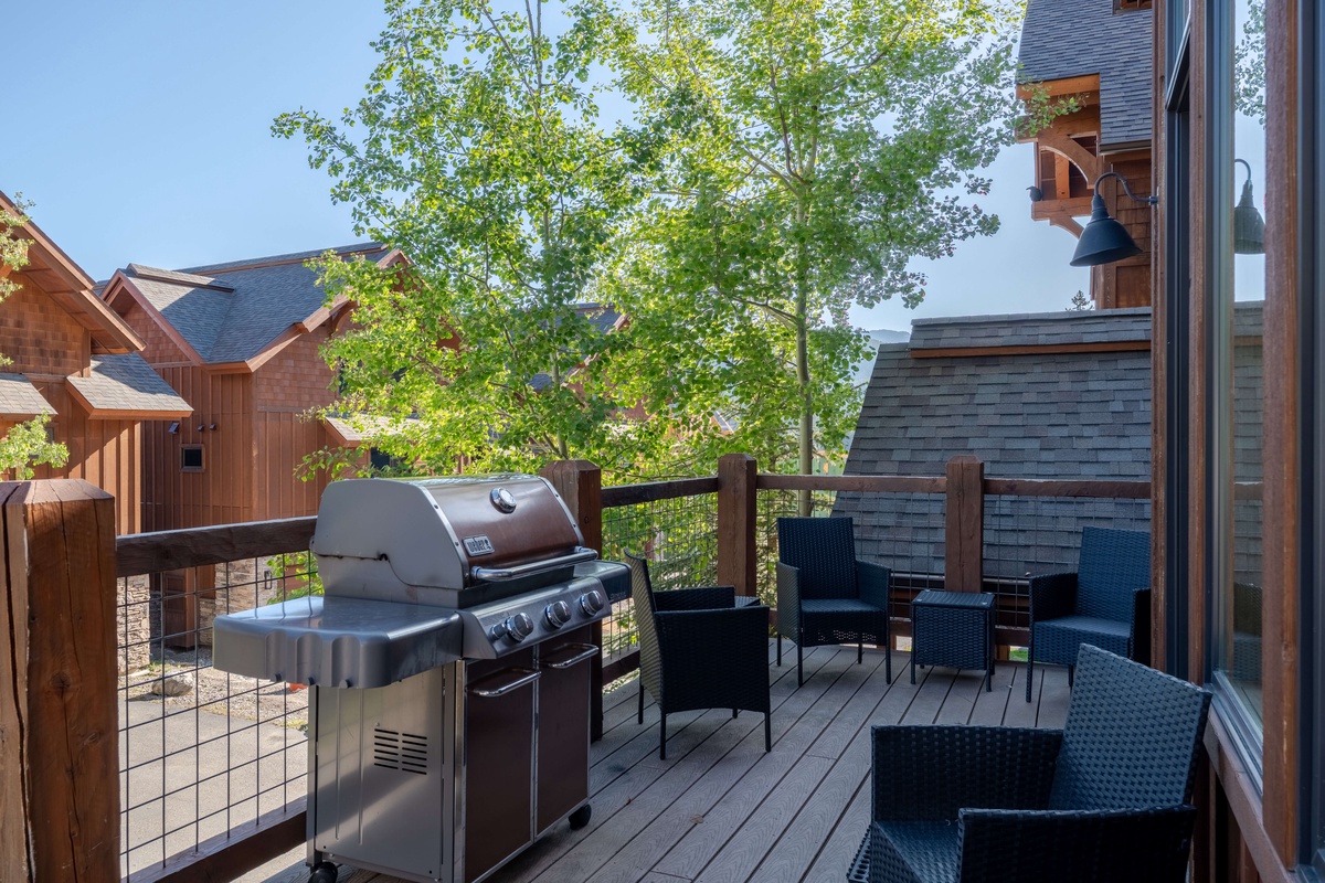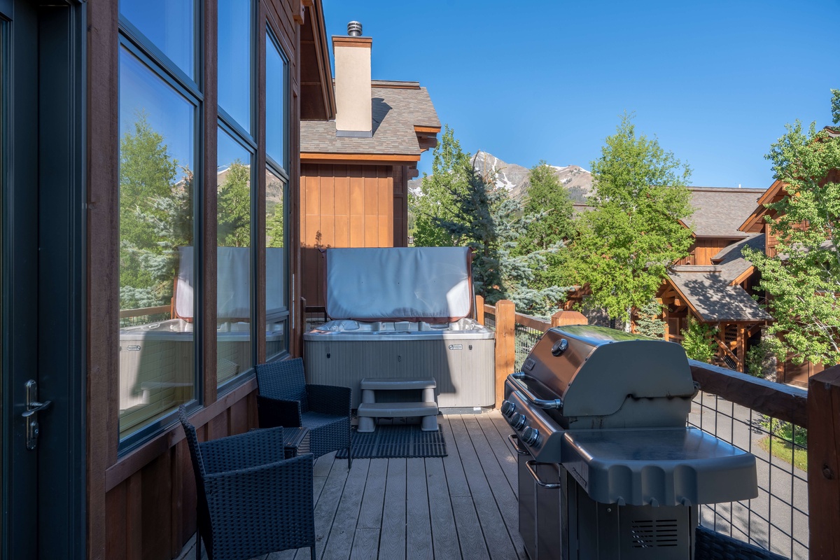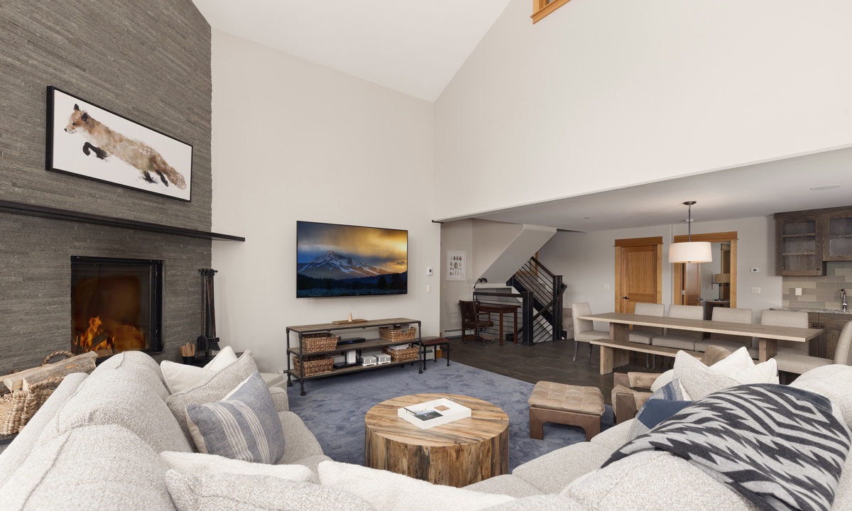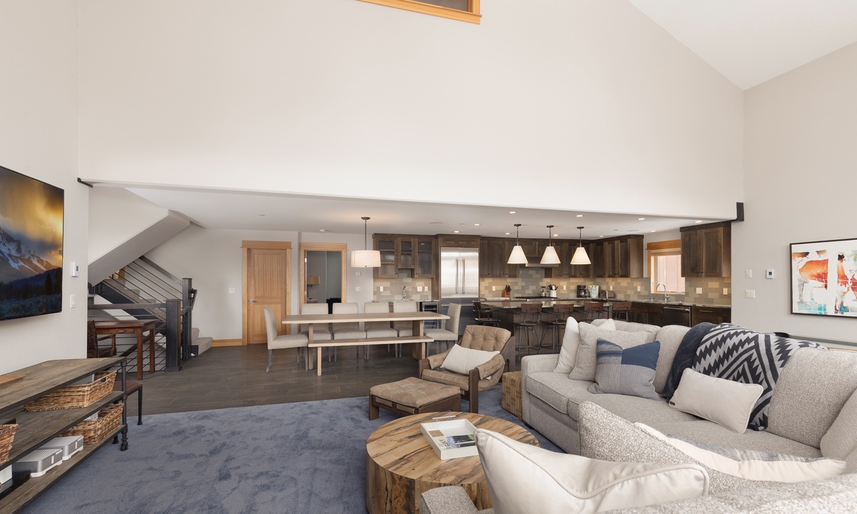 This elegant multi-level vacation rental is ideal for larger groups and families with 3,000 sq ft of living space spread over three levels. The chic open concept great room boasts upscale amenities and makes for seamless entertaining, from the gourmet kitchen through to the bubbling hot tub on the deck. A cozy loft living room offers a quiet escape after a day of Big Sky adventures.