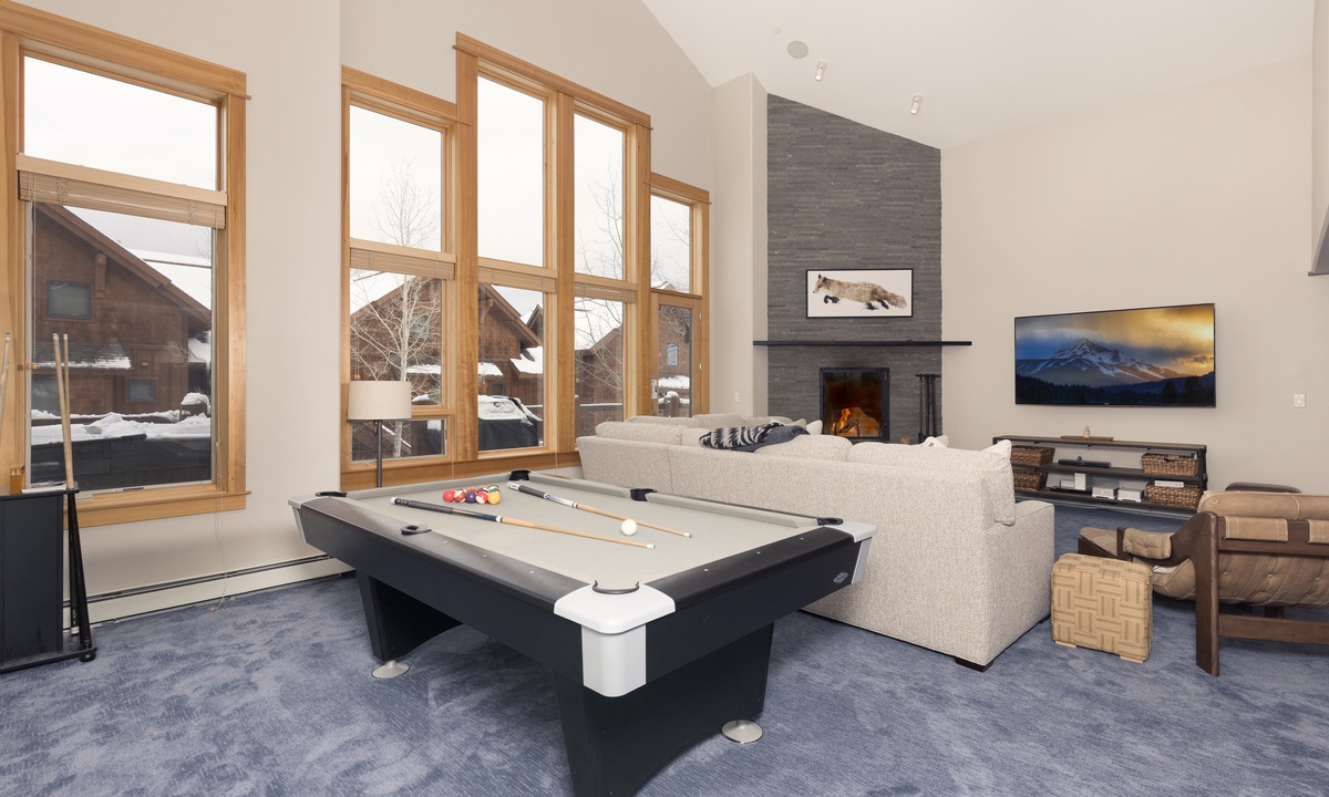 Excellent experience at Big Sky for a group of 7 ... location perfect for true ski in and minimal ski out ) walk 50 yards to poma lift. Short walk to mountain village... comfortable beds and spacious great room with pool table and large hot tub ( 6)