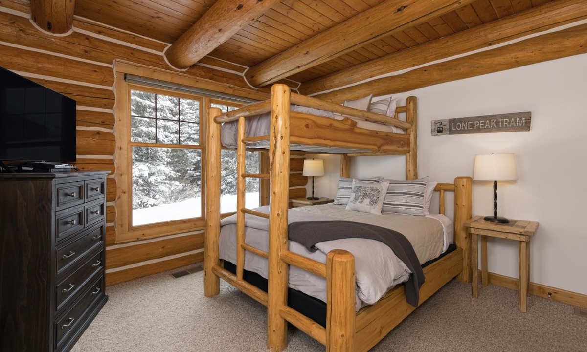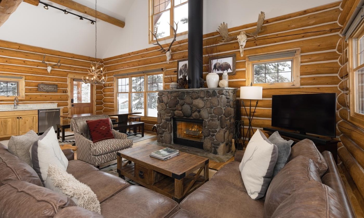 Set in serene wooded surroundings, bask in beautiful forest and mountain views from the cozy confines of this Powder Ridge log cabin, a premier Big Sky resort lodging option. Privately situated on an end lot in phase 1 of the Powder Ridge development with a small creek nearby, enjoy plenty of open space to play and ample opportunities for wildlife watching. With the Mountain Village just minutes down the road and ski-in/ski-out access to the biggest skiing in America mere steps from your door, Moose Ridge 7 makes for an amazing base camp to alpine adventure! Ideal for families, a few couples, or small group getaways, this abode offers 1,600 sq. feet of well-appointed space for recreation, relaxation, and good times together. The rustic, cabin-in-the-woods exterior gives way inside to luxury and modern convenience. Unwind from an epic day with a starlit dip in the outdoor hot tub. A quick jaunt from Lone Mountain and only 45 scenic miles from West Yellowstone, Moose Ridge 7 is the perfect lodging option for wherever your day takes you while at Big Sky Resort!