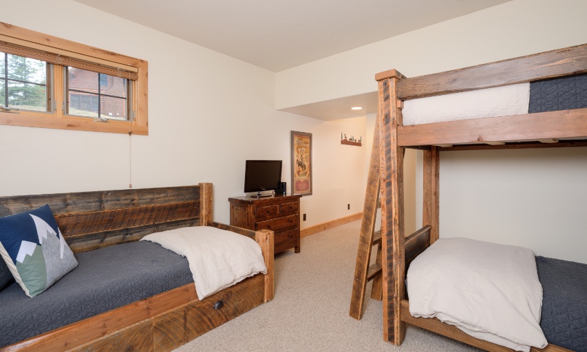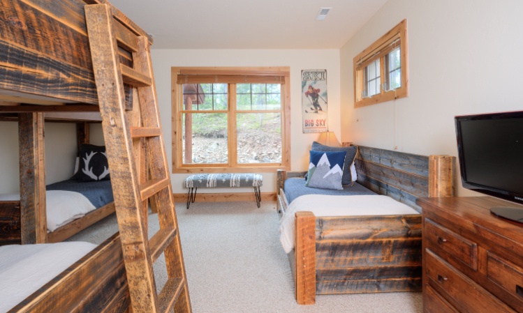 Beautiful forest and mountain views make this luxurious Powder Ridge log cabin a picture-perfect base camp to alpine adventure, wilderness excursions, and everything Montana. Located just 25 yards from the White Otter ski run, and only a few minutes from the Mountain Village, enjoy true hassle-free ski-in/ski-out access to the biggest skiing in America. Getting on and off the slopes doesn't get much easier, and, come summer, hiking, biking, and wildlife watching opportunities abound! An ideal fit for multiple families, vacationing couples, or a group getaway, this 2,500 sq. foot, 4 bedroom home provides plenty of well-appointed space to gather or spread out, in style. The cozy, Powder Ridge cabin-in-the-woods exterior gives way inside to high-end amenities, elegant furnishings, and modern conveniences throughout. Featuring a large lower level bunk room, this mountain hideaway allows for some additional occupancy and flexibility with sleeping arrangements not found in similar properties. A breathtaking wraparound deck overlooks a world of natural beauty and Spanish Peaks vistas. Savor the fresh air and great outdoors as you soak your stresses away in the amazing hot tub. A quick jaunt from Lone Mountain, and only 45 scenic miles from West Yellowstone, this retreat in the Rockies has you covered wherever the day takes you under the big sky.