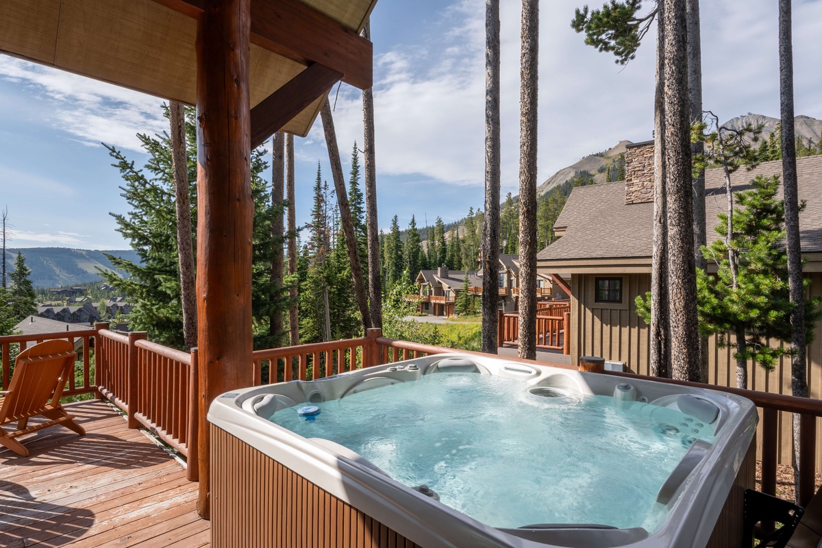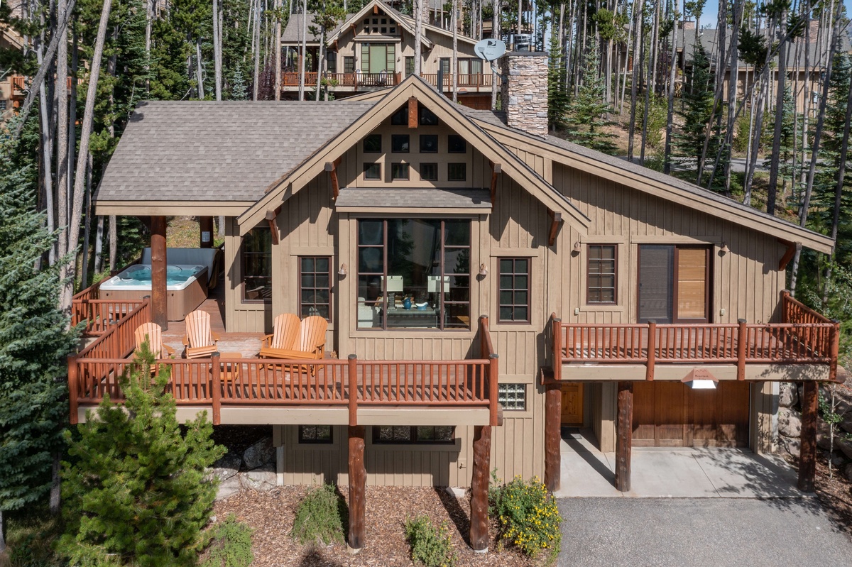 Nestled in the pines with amazing views of the Andesite’s slopes and the expanse of Lone Peak Mountain, this ski in / ski out chalet exudes comfort on every level. Professionally decorated with luxurious finishes, western touches, and artwork, no detail has been overlooked. The great area is inviting and a comfy place for everyone to relax, play board games, or curl up and watch a movie. A well-equipped kitchen and dining area make catering for a large group a breeze and extends to a large wrap around deck for perfect sunrise views, summer BBQs and soothing hot tub sessions under the stars.