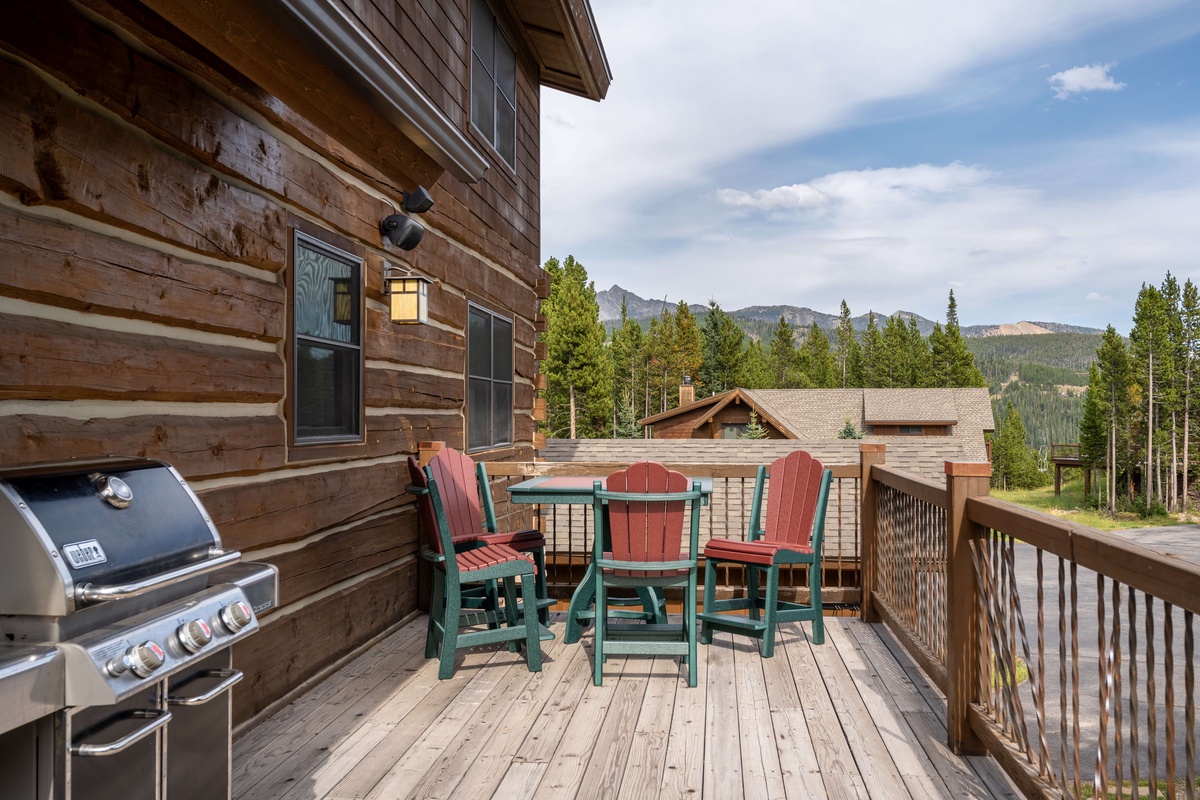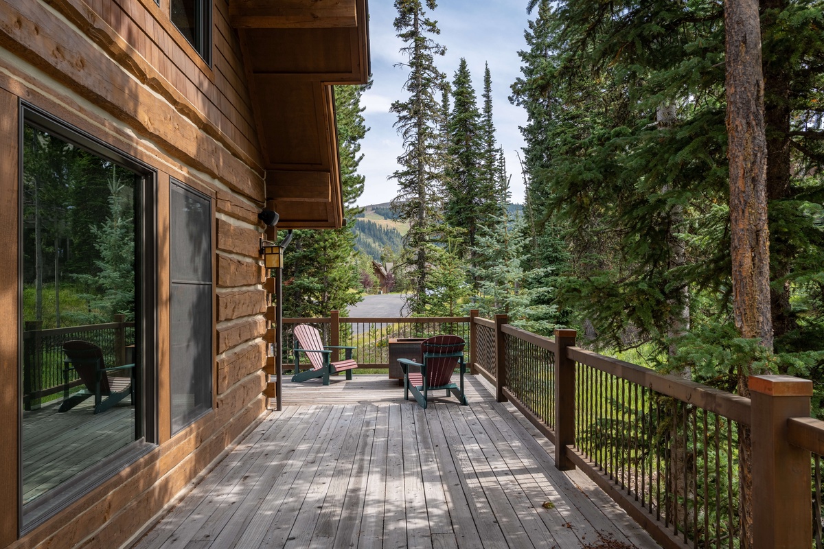 With lovely forest and mountain views, this luxurious Powder Ridge log cabin provides a picture-perfect backdrop for all your Big Sky adventures. Wonderfully secluded at the end of a quiet cul-de-sac, yet only a few minutes from the Mountain Village, enjoy ski-in/ski-out access to the biggest skiing in America. Wildlife watching opportunities abound! An ideal fit for multiple families, 4 or 5 couples, or a small group getaway, this 2,500 sq. foot, 4 bedroom home offers plenty of well-appointed space to gather, or spread out, in style. We also manage several nearby properties to accommodate larger parties.