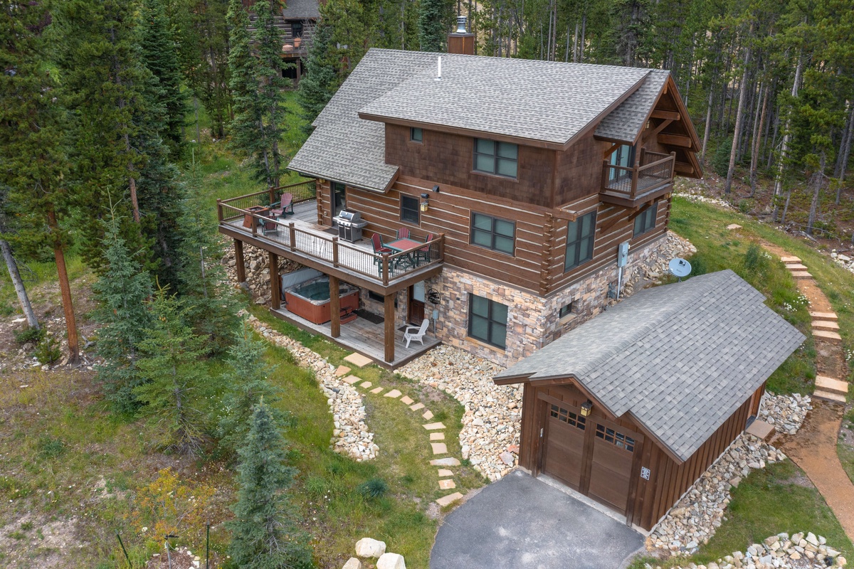 Recently completed, the cozy, cabin-in-the-woods exterior gives way inside to high-end amenities, elegant furnishings, and modern conveniences throughout.  Designer finishes and fashionable décor immediately distinguish this cabin from your standard Powder Ridge rental. Utilize a whole home humidification system to combat the arid climate. An extra large hot water heater eliminates those fights for first shower. The breathtaking wraparound deck sets the stage for bluebird picnic lunches and sunset barbecues.