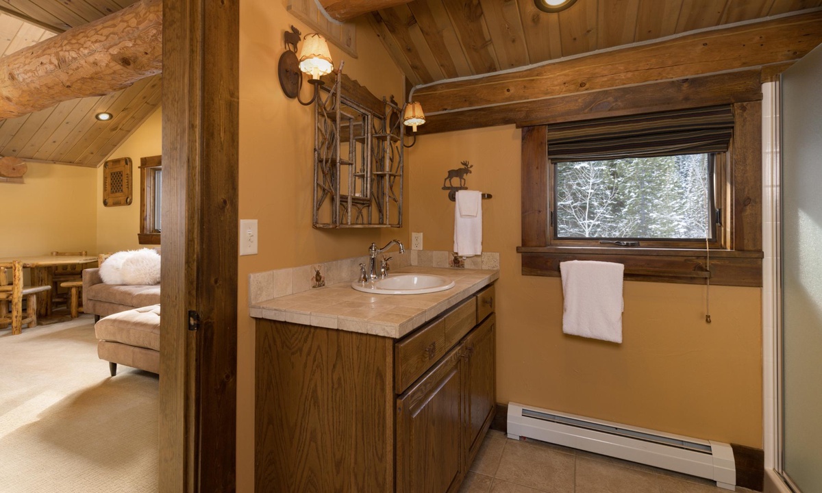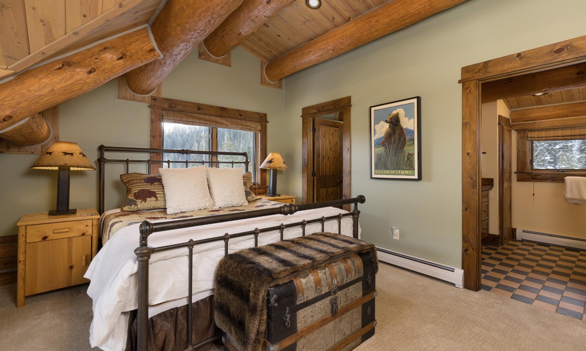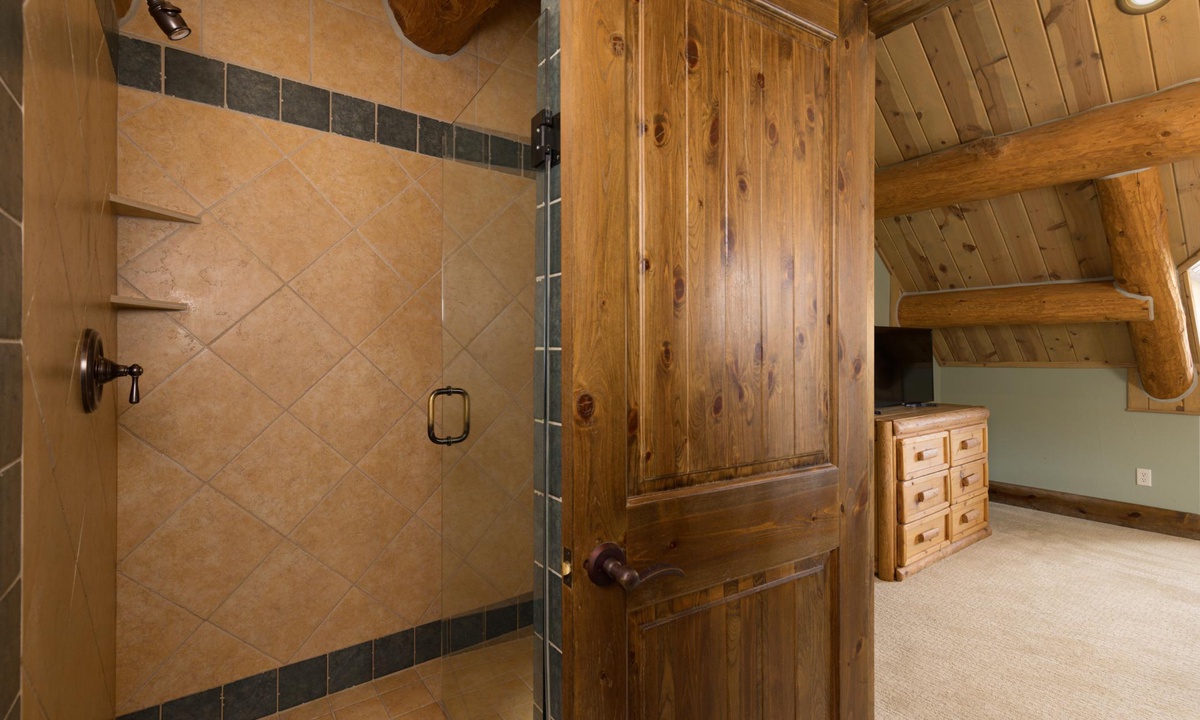 Bedroom 4- Queen bed | private 3/4 bath, walk-in shower, toilet, sink | upper level