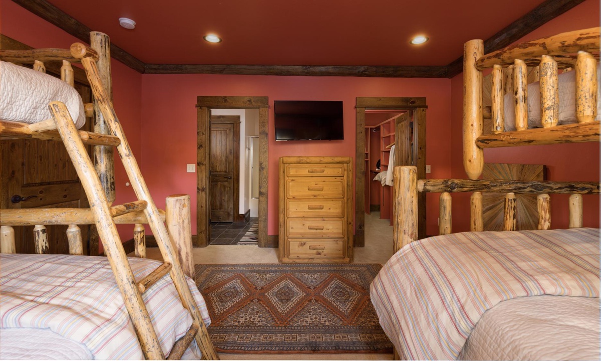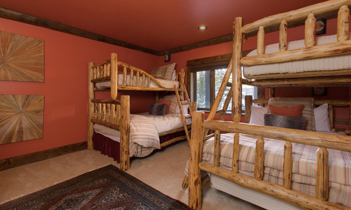 Bedroom 3- Two double beds with twin top bunks | shared full bath, shower/tub, toilet, sink | lower level