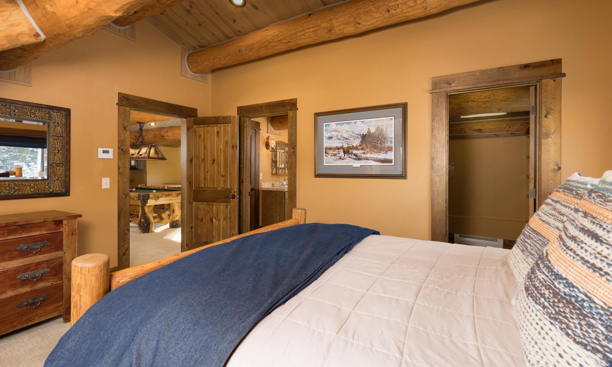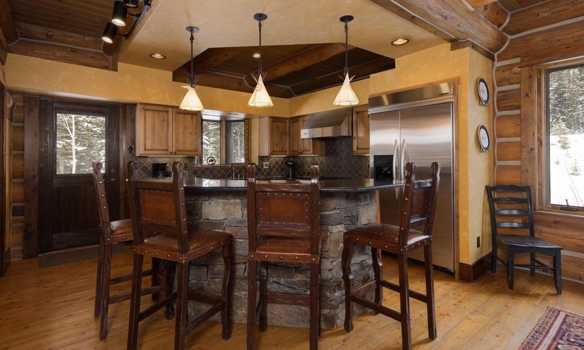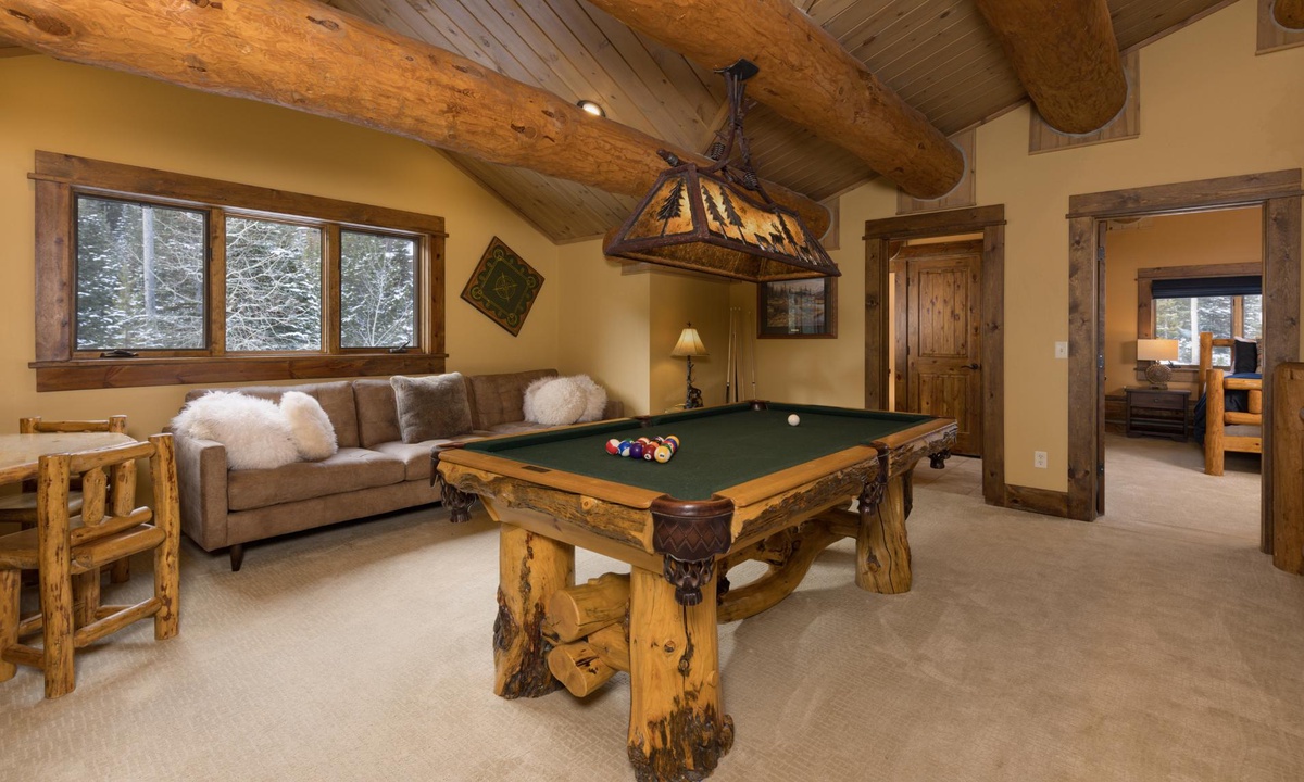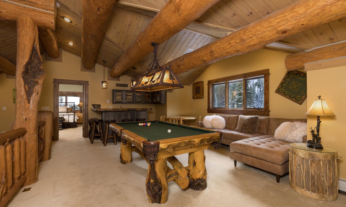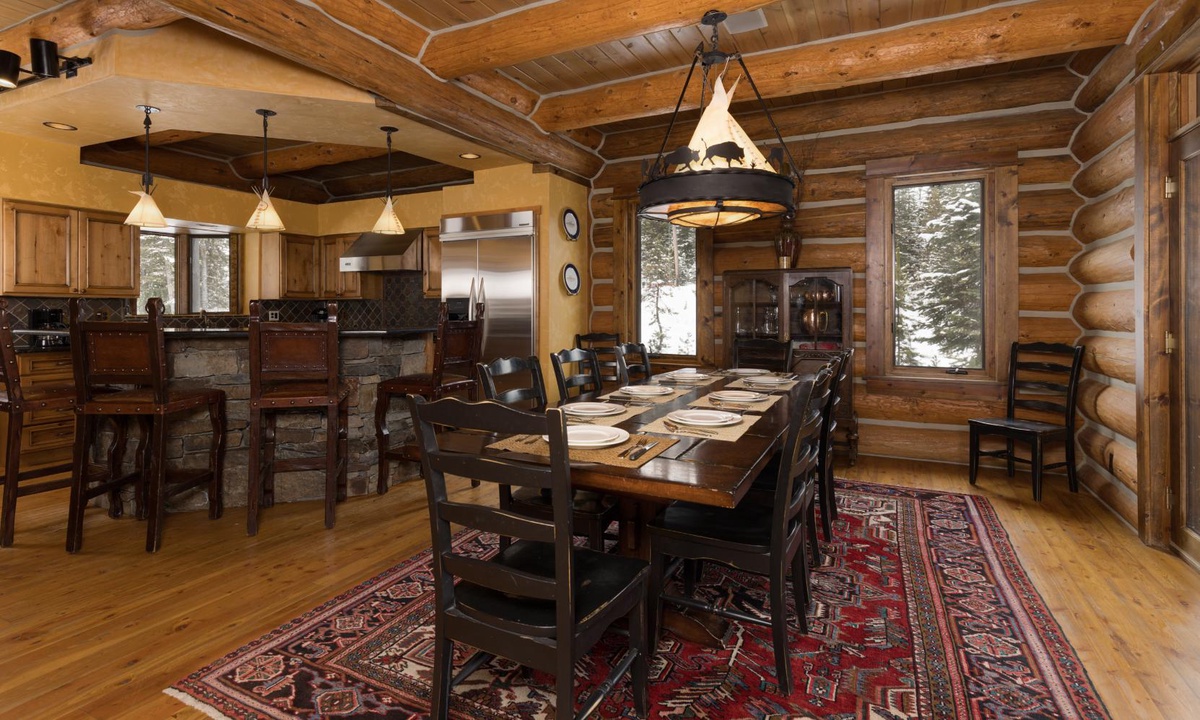This magnificent 5,000 sq ft log home is super spacious yet inviting, with a casual and cozy mountain lodge vibe and boasts all the high-end amenities you’d need for a large gathering. There’s ample space for everyone with 5 beautifully appointed bedrooms, cozy nooks throughout the home and three decks for outdoor living. Whether you’re soaking up the views from the hot tub, hanging out with your tribe in the character-filled pool room and bar or discovering the ski-in/ski-out and endless hiking trails from your backdoor, this Big Sky favorite has guests coming back time and time again.