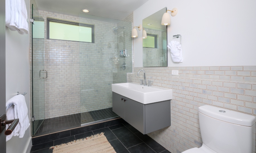 Bedroom 2- King bed | adjacent 3/4 bath, walk-in shower, toilet, sink | upper level