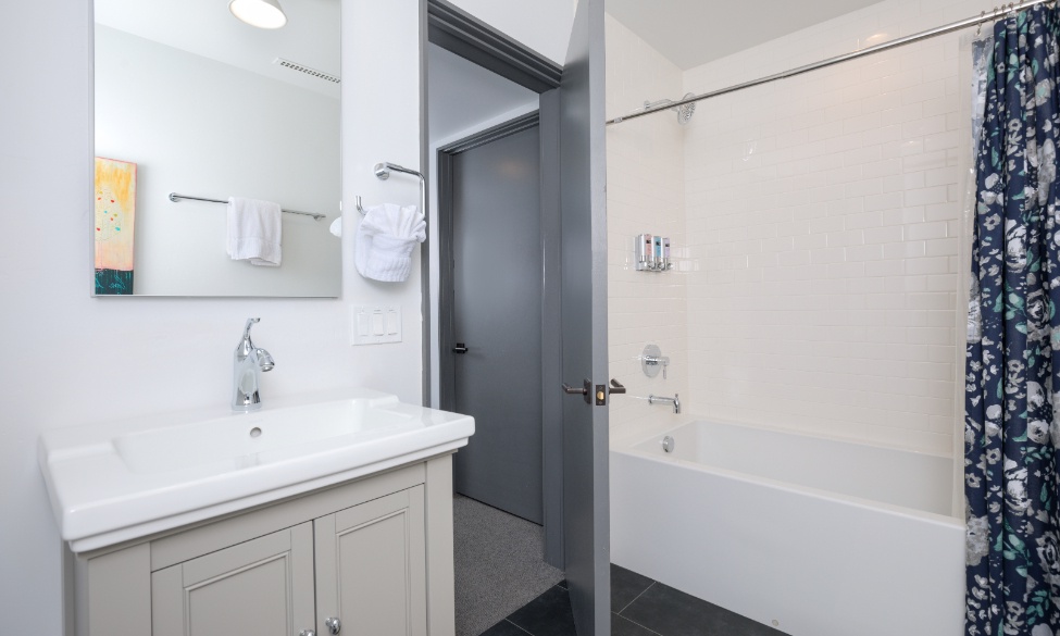Bonus space- Two twin bunks (4 beds) | adjacent full bath, shower/tub, toilet, sink | lower level