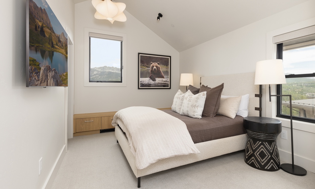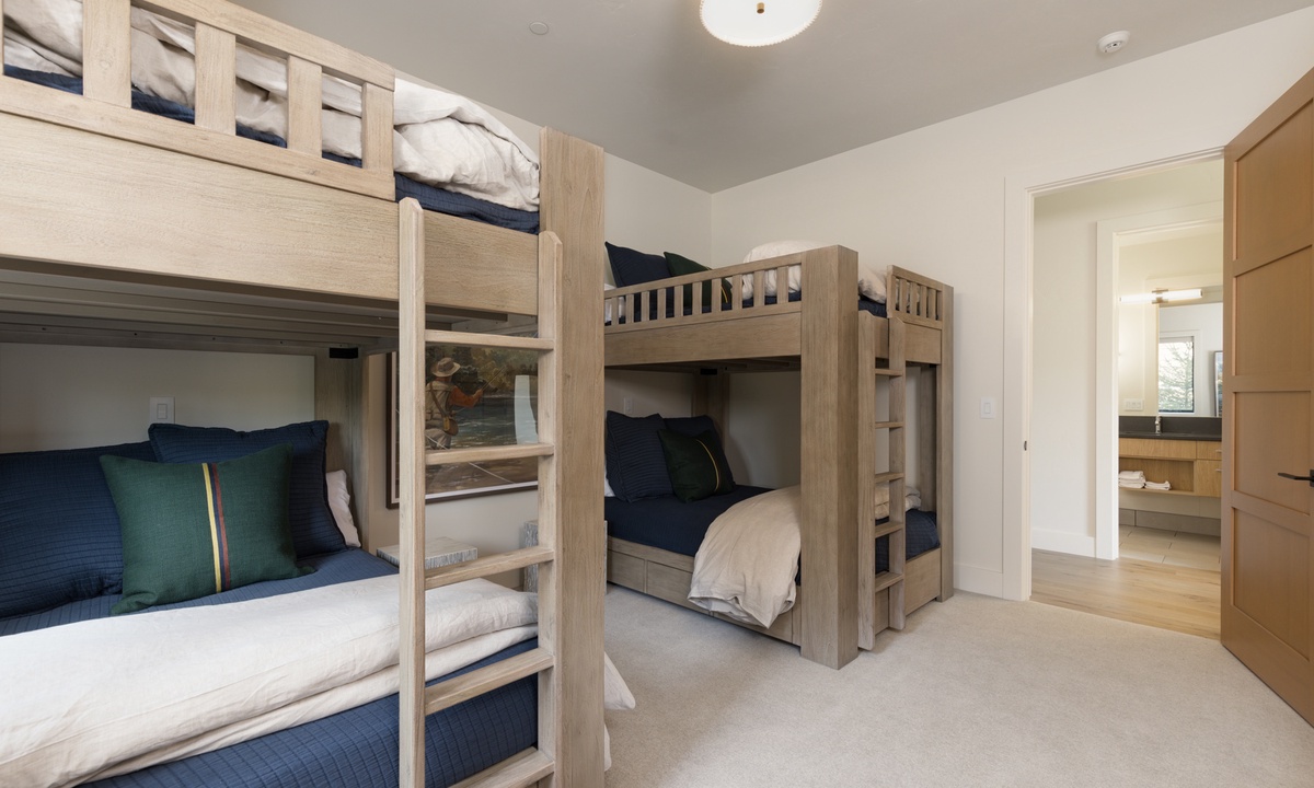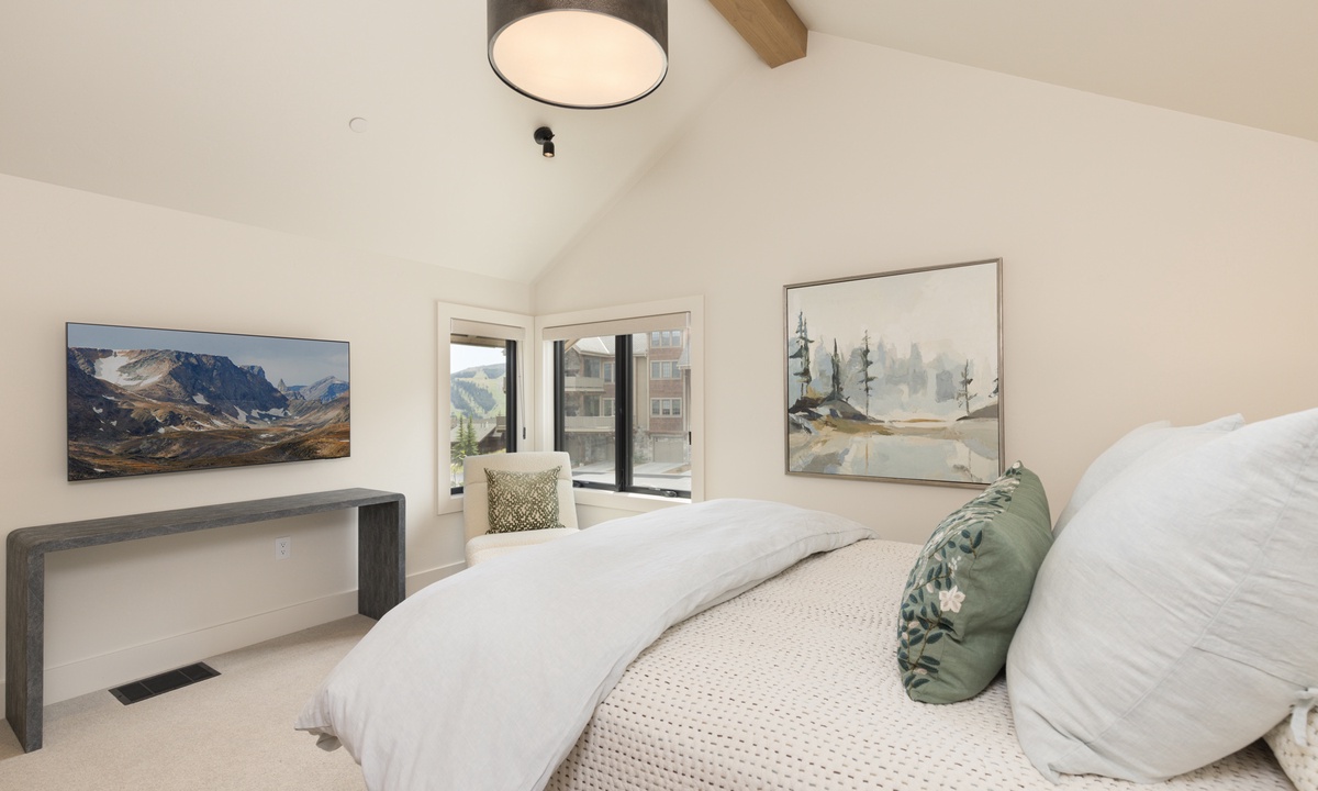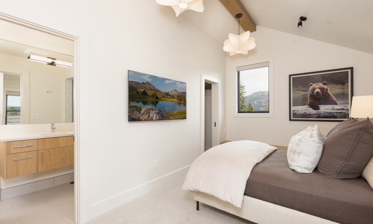 Ready to rest easy? Each of the six bedrooms is a luxurious sanctuary, designed with comfort and tranquility in mind. On the main level, find the breathtaking Primary King Suite, featuring deck access, ensuite bathroom with walk-in steam shower, dual vanities, soaking tub, walk-in closet, and a flat screen TV. Also on this level, find the well-appointed Second King Suite with a flat screen TV and stunning views. This retreat features an ensuite bathroom with walk-in shower, dual vanities, and high-end fixtures. On the lower level find a Third King Suite complete with a flat screen TV, walk-in closet, and an ensuite bathroom with walk-in shower. The Bunk Room can also be found on this level hosting two Full/Full bunk beds with a flat screen TV. Head to the upper level and find two more Queen Suites. The First Queen Suite offers an ensuite bathroom with dual vanities and a tub/shower combo, plus a flat screen TV. The Second Queen Suite boasts huge views of Beehive Basin and sweeping mountain vistas. In this room, find a walk-in closet with creative storage and an ensuite bathroom with a walk-in shower.