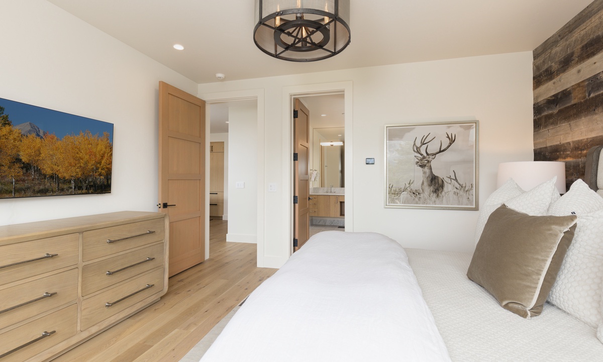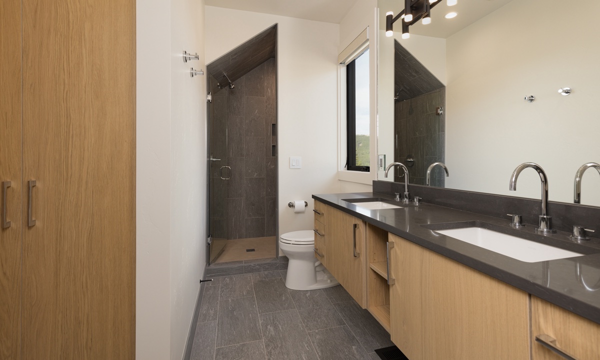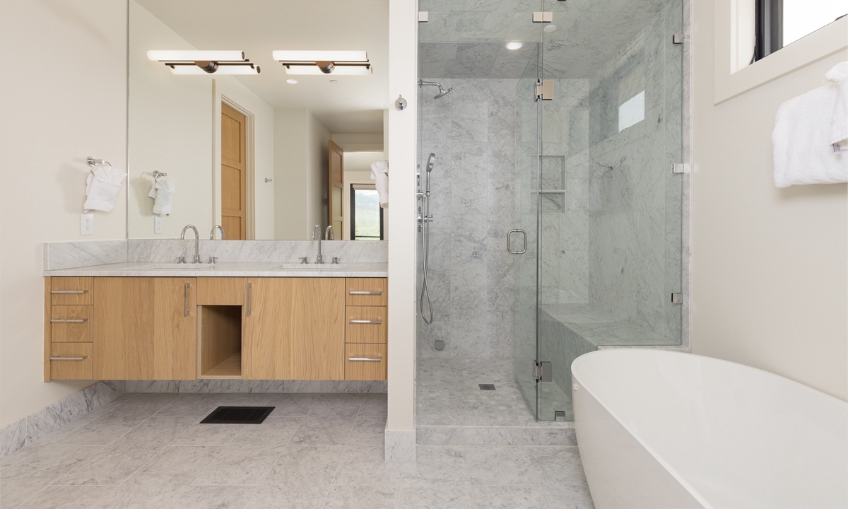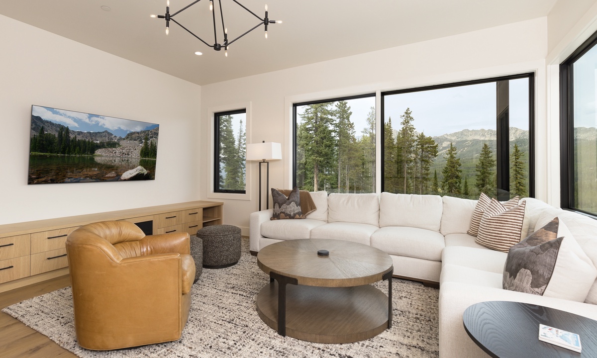 Ready to rest easy? Each of the six bedrooms is a luxurious sanctuary, designed with comfort and tranquility in mind. On the main level, find the breathtaking Primary King Suite, featuring deck access, ensuite bathroom with walk-in steam shower, dual vanities, soaking tub, walk-in closet, and a flat screen TV. Also on this level, find the well-appointed Second King Suite with a flat screen TV and stunning views. This retreat features an ensuite bathroom with walk-in shower, dual vanities, and high-end fixtures. On the lower level find a Third King Suite complete with a flat screen TV, walk-in closet, and an ensuite bathroom with walk-in shower. The Bunk Room can also be found on this level hosting two Full/Full bunk beds with a flat screen TV. Head to the upper level and find two more Queen Suites. The First Queen Suite offers an ensuite bathroom with dual vanities and a tub/shower combo, plus a flat screen TV. The Second Queen Suite boasts huge views of Beehive Basin and sweeping mountain vistas. In this room, find a walk-in closet with creative storage and an ensuite bathroom with a walk-in shower.