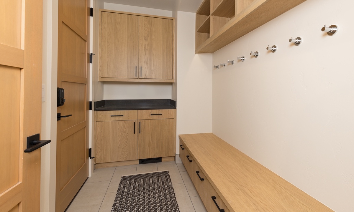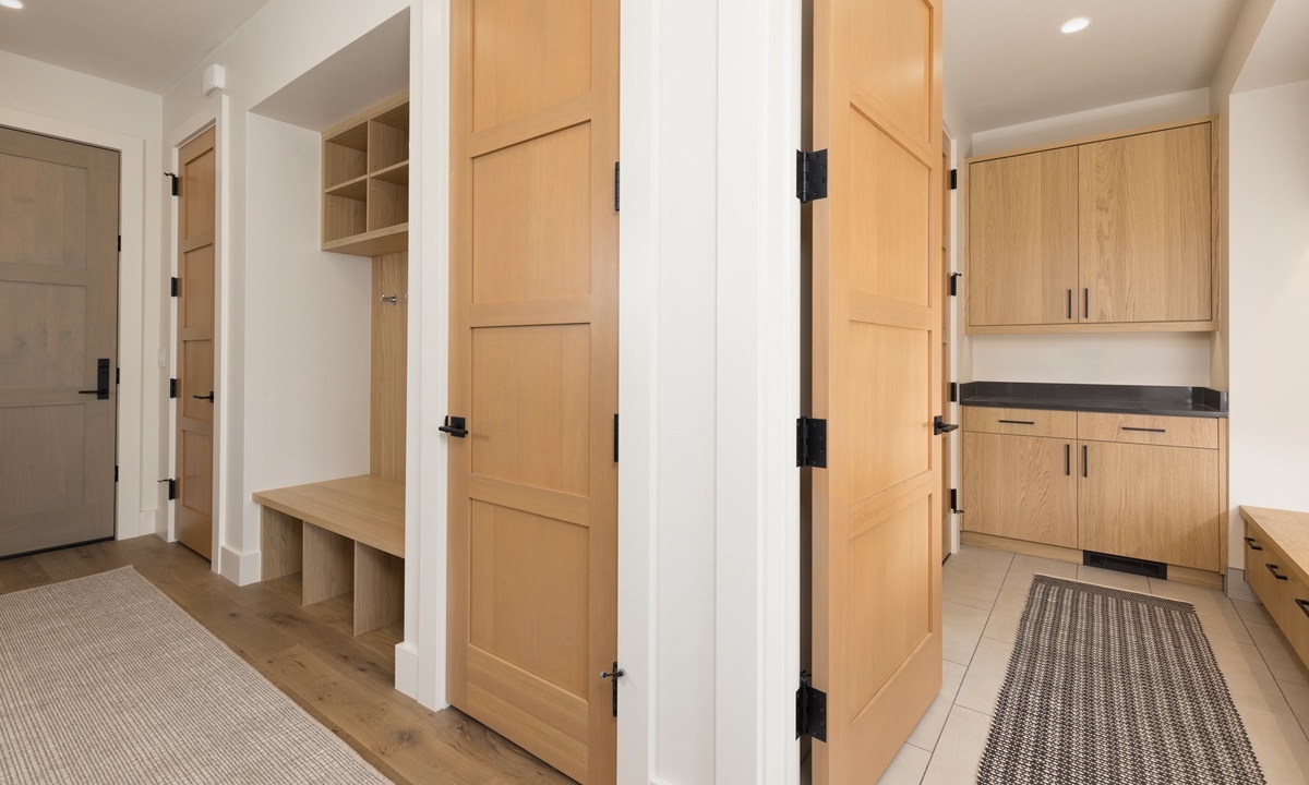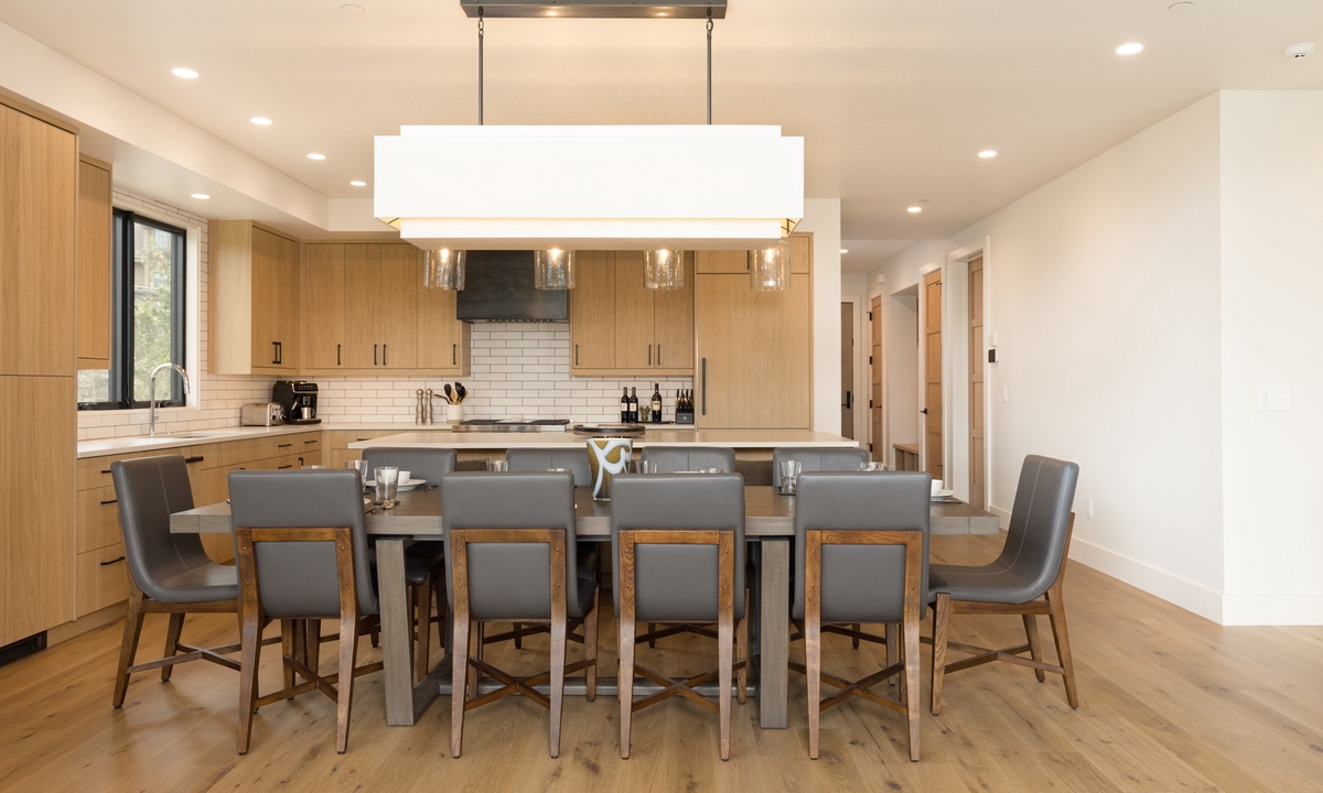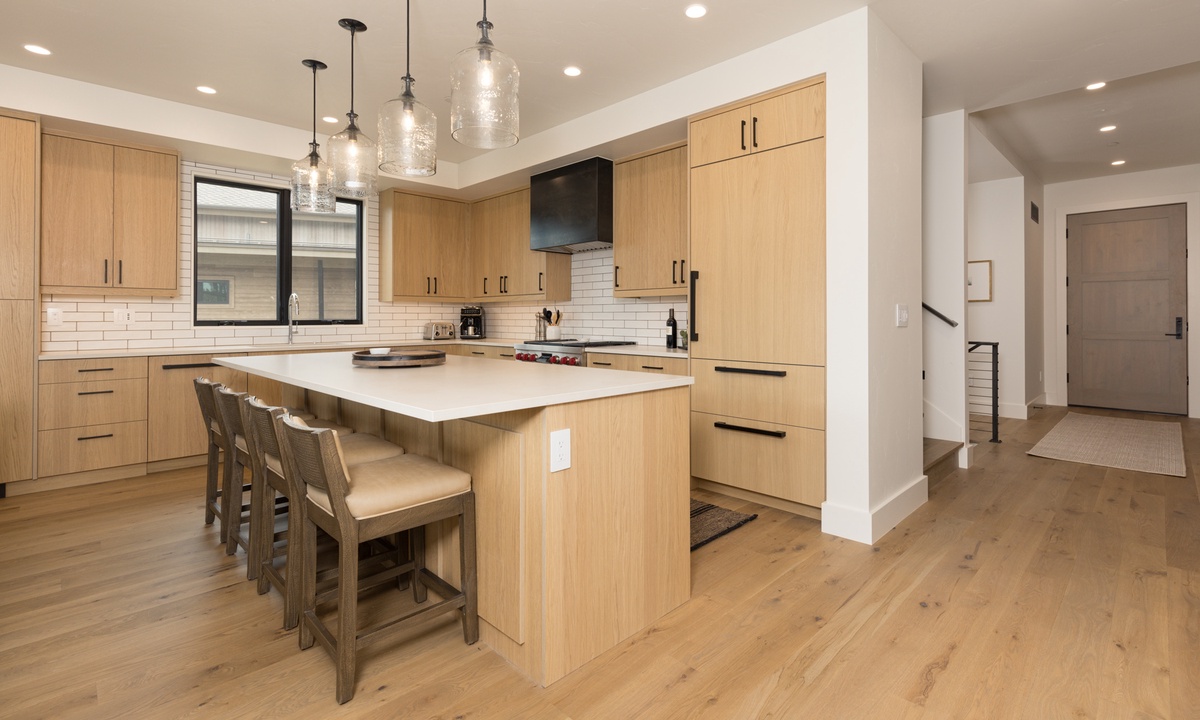 Additional amenities include a heated one car garage with additional overflow parking, dedicated ski storage, glove & boot dryers, central AC with Nest thermostats, butler’s pantry with full-size washer & dryer and additional full-size fridge, high-speed WiFi, bluetooth sound system, keyless entry, and remote check-in.