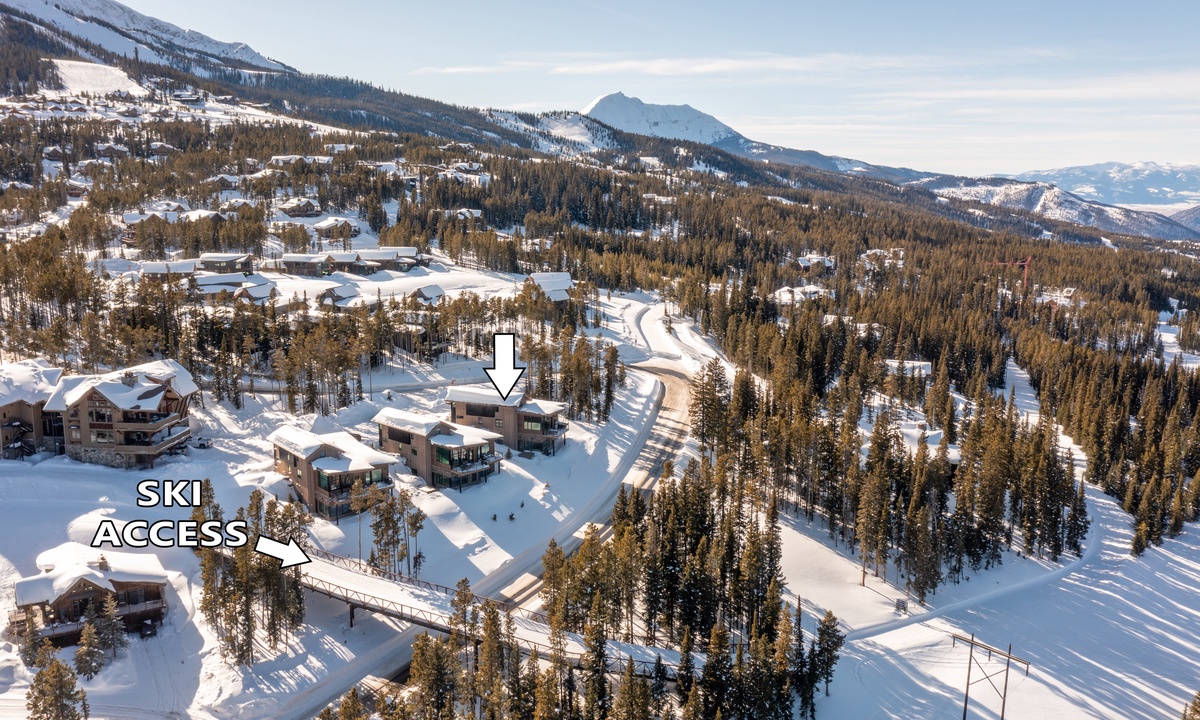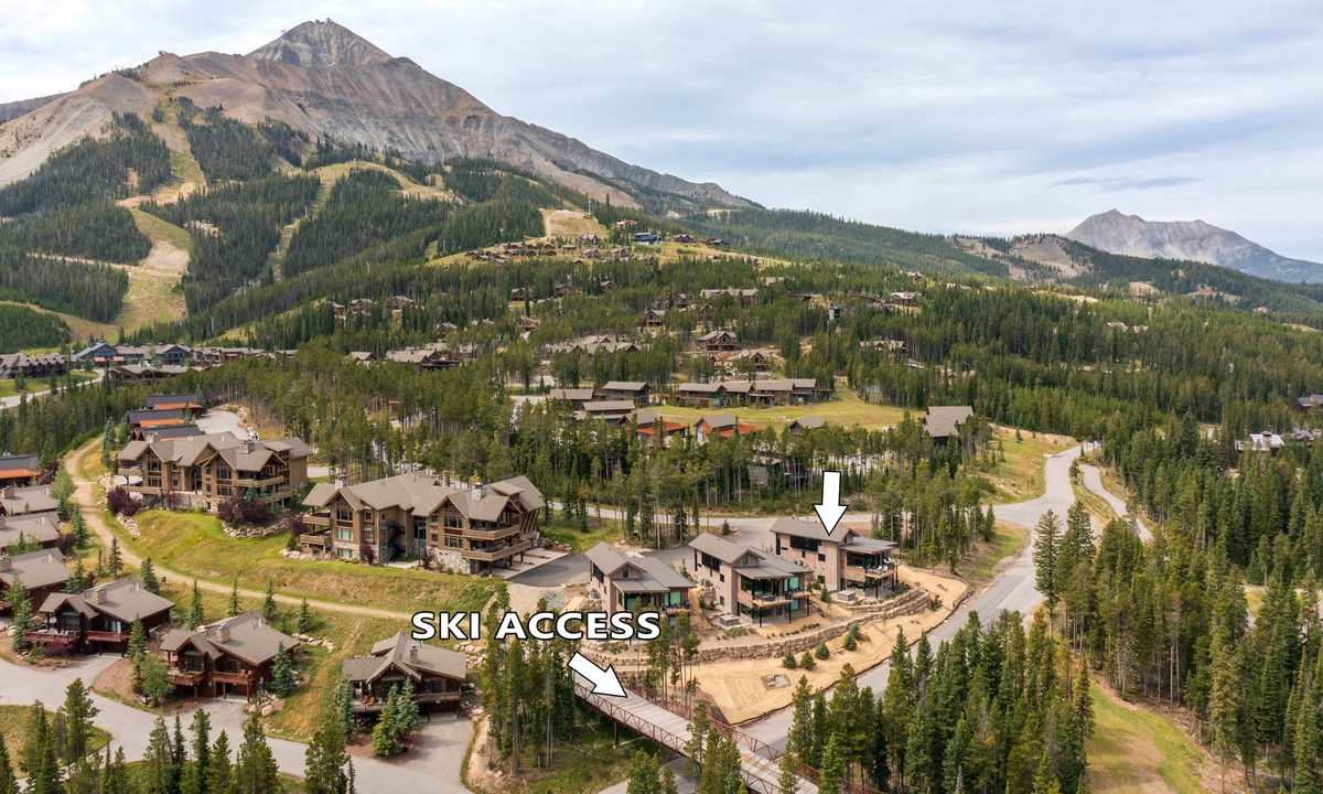 The home is located on the Alpine Meadows Access. This access is located out the garage door. Once on the trail you proceed left (north) on the Alpine Meadows access which connects to Hideaway and the Madison Base Area.