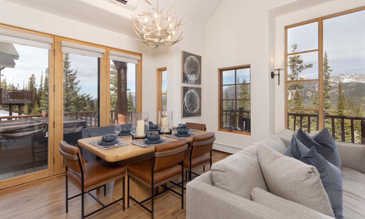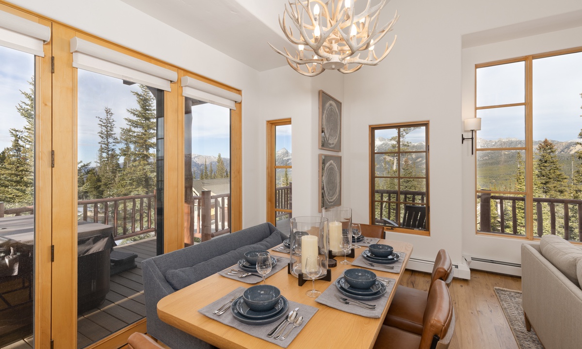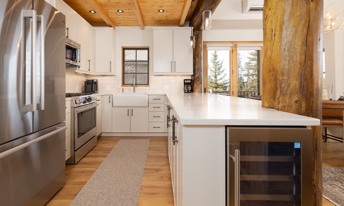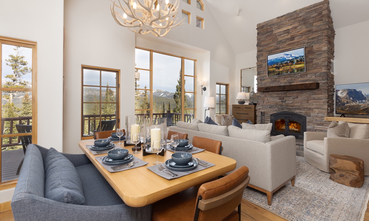 Step into this home and find the open living space complete with vaulted ceiling and tall windows offering tons of natural light. Take a seat in the cozy living room and relax by the wood-burning fireplace, enjoy a movie on the flat-screen TV, or challenge your group to a game on the Xbox gaming system. Step out onto the main level deck, where you'll find outdoor seating and your own private hot tub, perfect for unwinding after a day on the slopes. The fully equipped kitchen features sleek stainless steel appliances, a wine fridge, and all the essentials needed to prepare your favorite meals. Ready to dine? Gather around the dining table, which seats six, or enjoy casual meals at the breakfast bar with seating for four.
