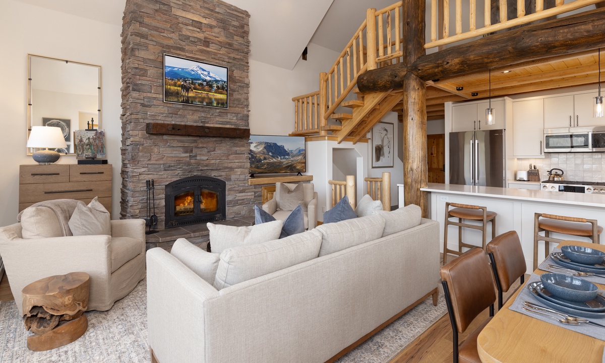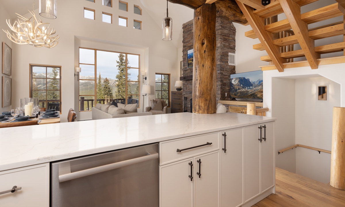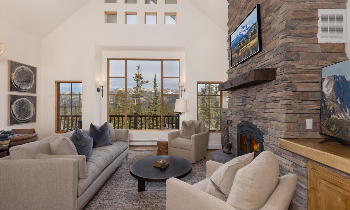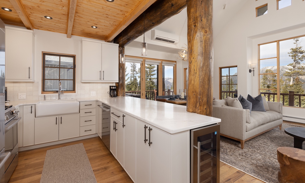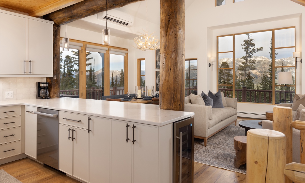 Step into this home and find the open living space complete with vaulted ceiling and tall windows offering tons of natural light. Take a seat in the cozy living room and relax by the wood-burning fireplace, enjoy a movie on the flat-screen TV, or challenge your group to a game on the Xbox gaming system. Step out onto the main level deck, where you'll find outdoor seating and your own private hot tub, perfect for unwinding after a day on the slopes. The fully equipped kitchen features sleek stainless steel appliances, a wine fridge, and all the essentials needed to prepare your favorite meals. Ready to dine? Gather around the dining table, which seats six, or enjoy casual meals at the breakfast bar with seating for four.