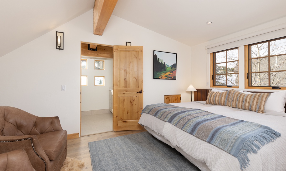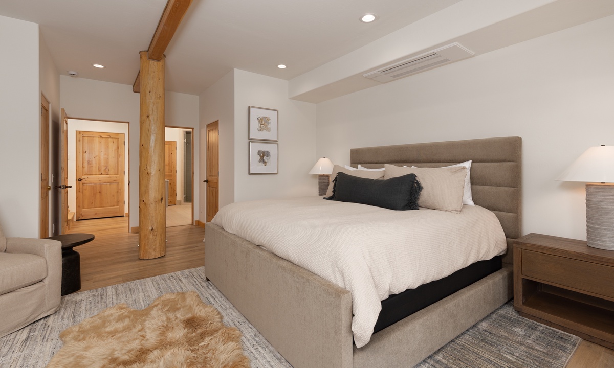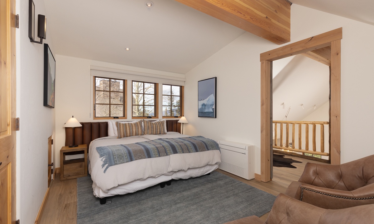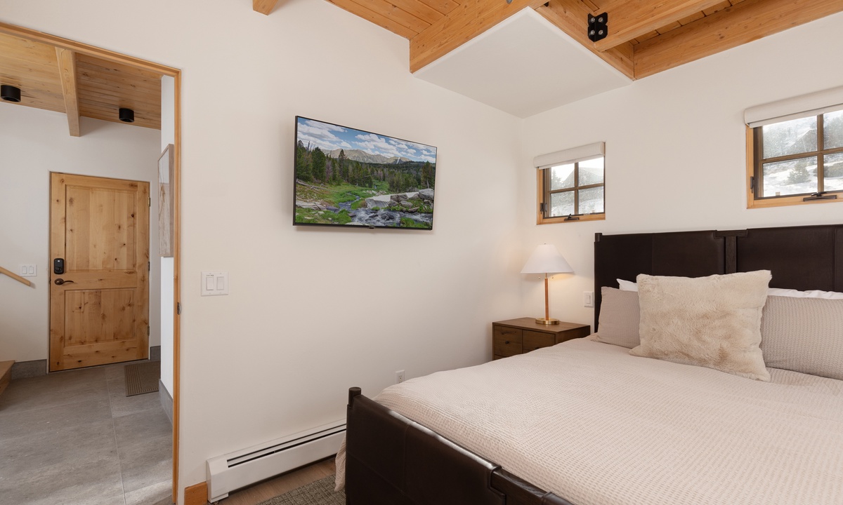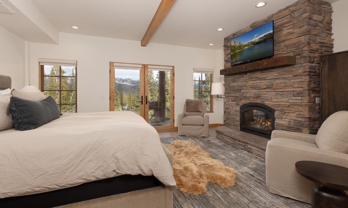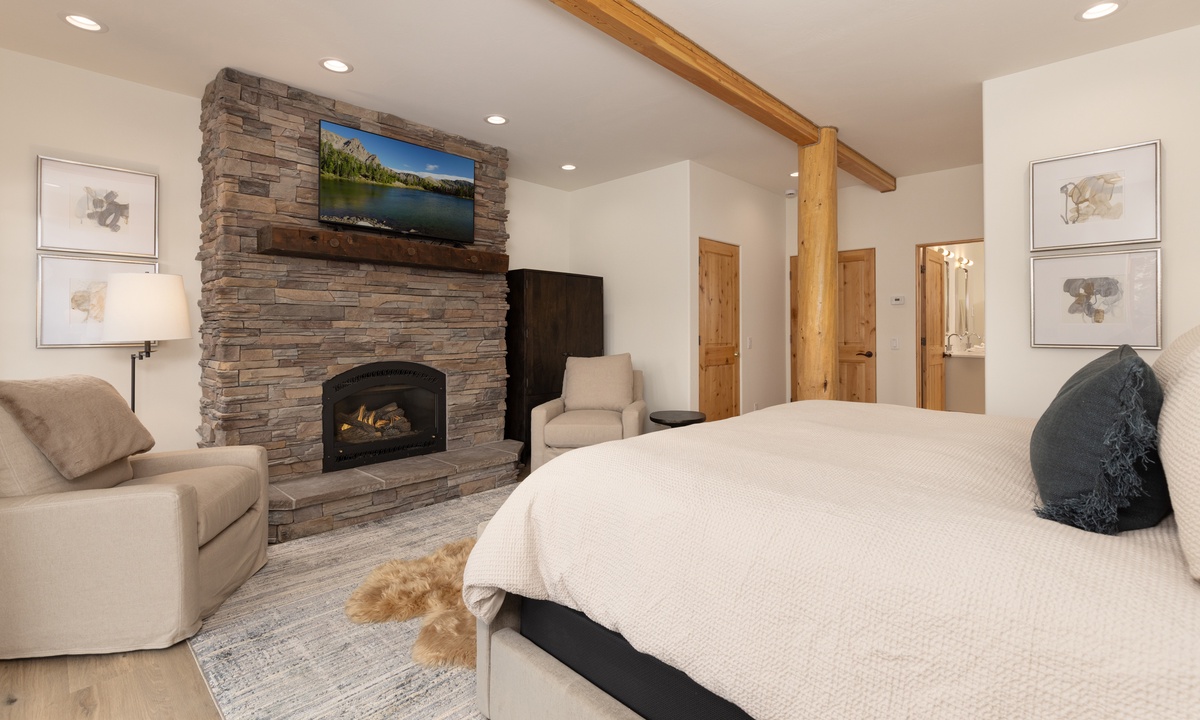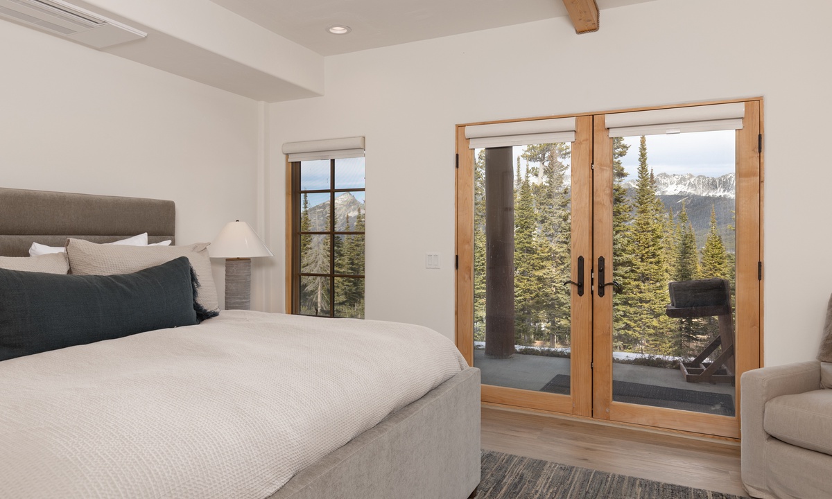 Ready to rest easy? Head to the spacious Primary King Suite on the lower level. This expansive suite features a walk-in closet, a gas fireplace, and a flat-screen TV. Walk through the room and open to the doors to the outside revealing a lower level patio with seating for two and sweeping mountain views. Also find an attached ensuite bathroom boasting a jetted tub, stand-up shower, and dual vanities. Head all the way to the upper level loft and find the Second King Suite complete with a flat screen TV, remote work space area, and an attached ensuite bathroom with a stand-up shower. The Queen Bedroom on the main level features a flat screen TV, quiet reading nook, and closet space. There is a full bathroom on this level with a stand up shower with hallway access. Whether you're hitting the slopes in the winter or enjoying the great outdoors in the summer months, Moonlight Mountain Home 7 Derringer is the perfect choice for your next Big Sky adventure.