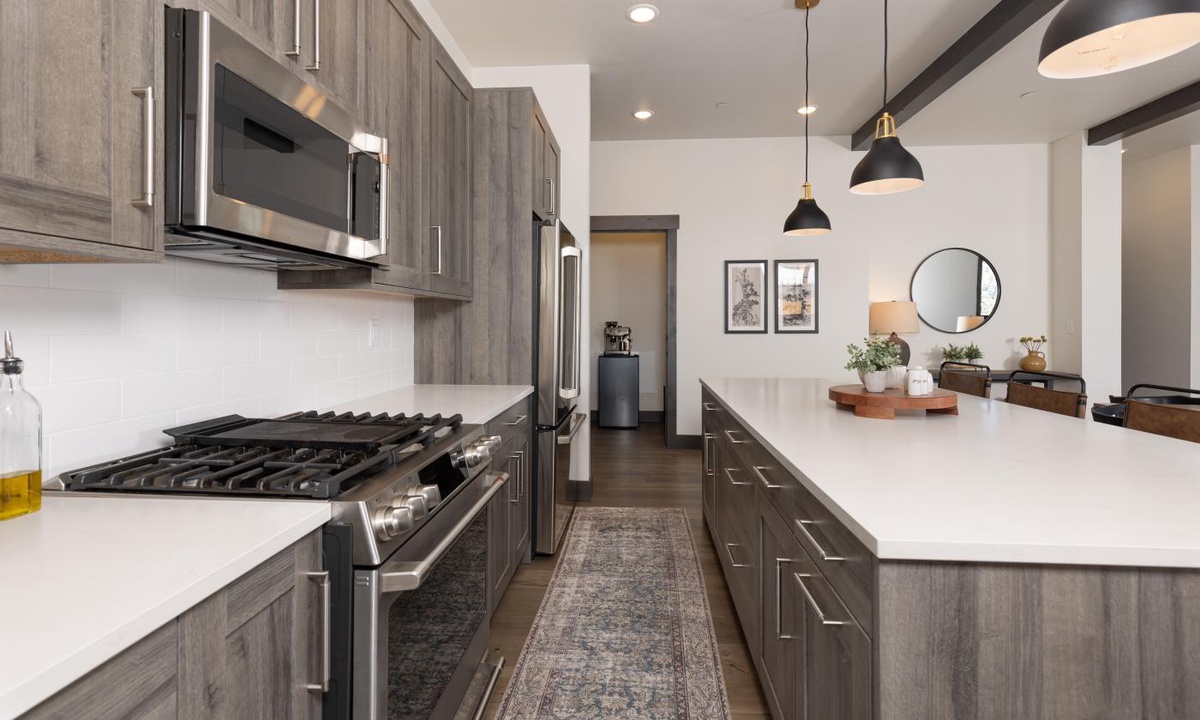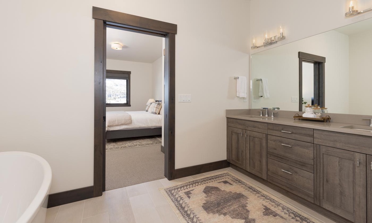 Ready to rest easy? Head to one of the four bedroom suites, all boasting tons of space and large attached ensuite bathrooms. All of the comforts of home await at this perfectly appointed penthouse, and is the ideal home base for all of your mountain adventures. Hit the slopes at Big Sky Resort (a complimentary shuttle ride away!), conquer mountain bike trails, paddle across Lake Levinsky, or hike the scenic Beehive Trail. Winter transforms the landscape into a wonderland – snowshoe through frosted forests, glide across pristine cross-country tracks, or embark on an exhilarating dog sledding adventure. And just a breathtaking one-hour drive away, Yellowstone National Park, a treasure trove of geysers, hot springs, and wildlife, awaits.