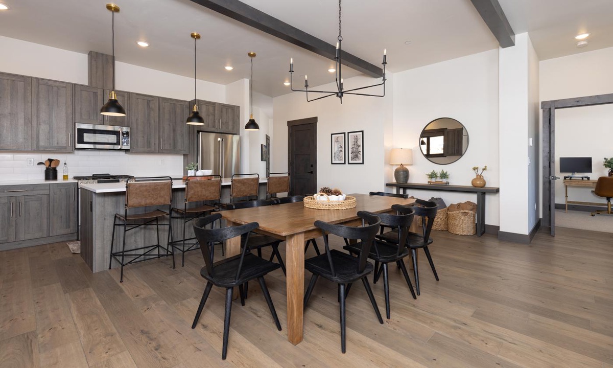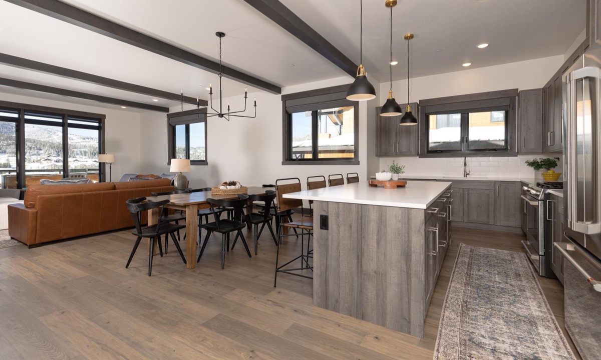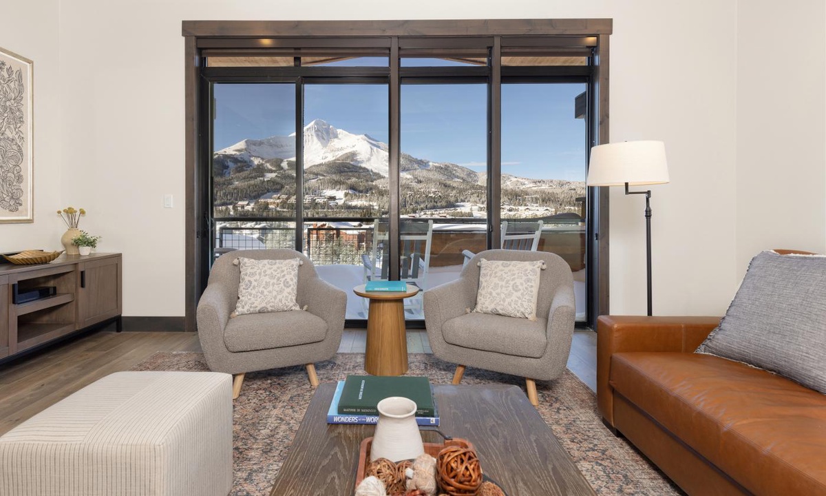 Welcome to your home away from home for your next mountain getaway to Big Sky, MT! Enjoy the sweeping views of Lone Peak and Lake Levinsky which are both perfectly framed in the floor to ceiling windows in this stunning penthouse. This expansive retreat welcomes you with high vaulted ceilings as you walk into luxury and make yourself at home. Enjoy a morning cup of Joe or an after adventure cocktail on your private balcony, which becomes your front row seat to the magic of Big Sky. The chef in your group will love the gourmet kitchen, full equipped with all the latest appliances and tons of counter space. Bring the whole group together at the large dining room table, or pull up a seat at the breakfast bar. Also, at the end of a fun day full of adventure, enjoy the common area hot tub or take a dip in the shared outdoor pool (pool closed during winter months.)