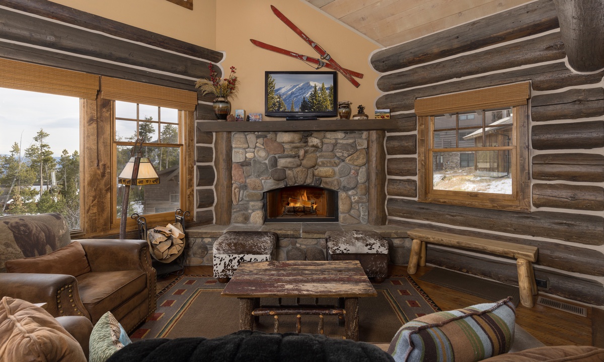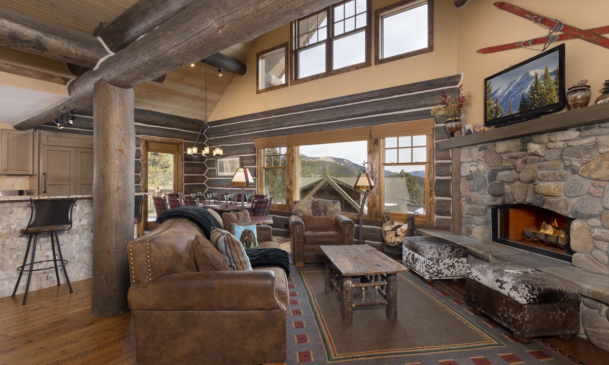 Panoramic forest and mountain views await from this 4 bedroom, 3 bathroom Big Sky Powder Ridge cabin with ski-in/ski-out access to the biggest skiing in America. This cabin boasts high-end amenities, elegant furnishings and modern conveniences throughout.