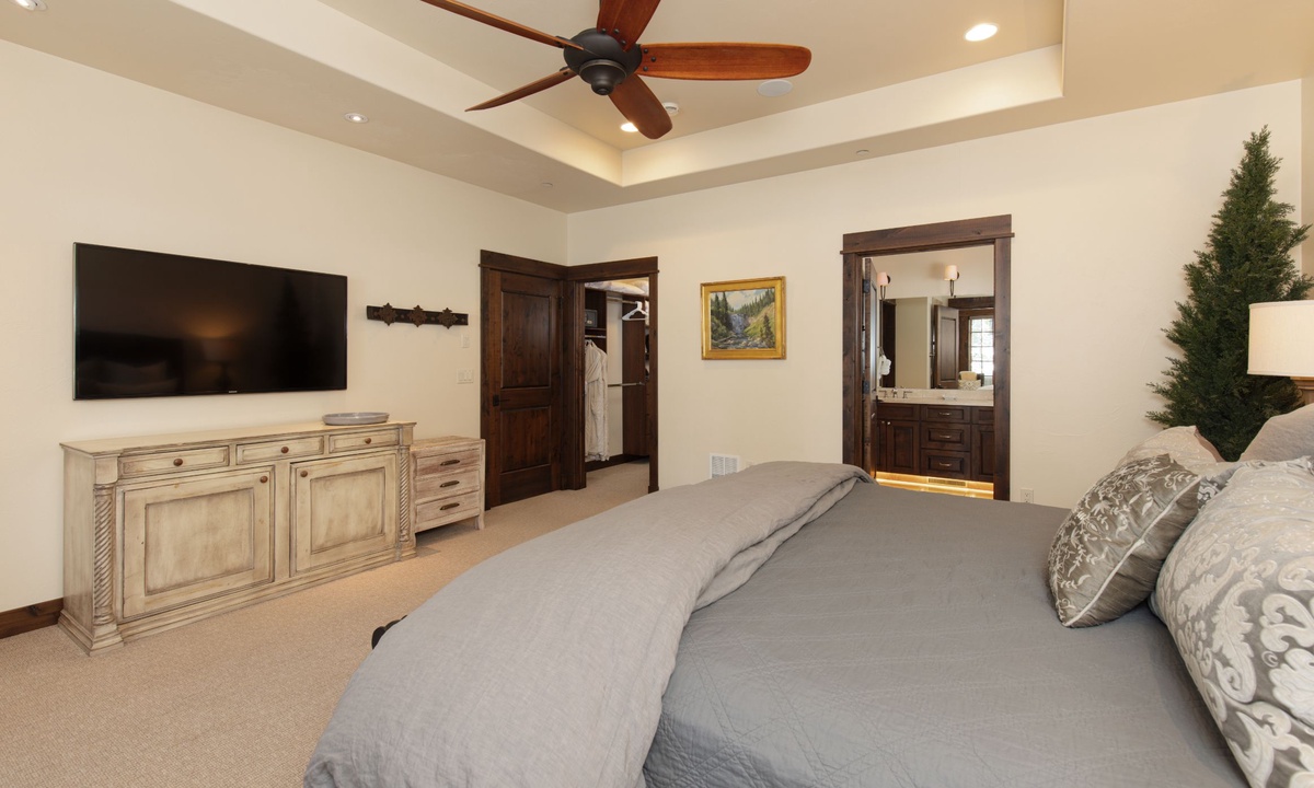 Ready to rest easy? Find the Primary King Suite on the main level featuring an attached ensuite bathroom with a stand up shower and a soaking tub. Also on this floor, find another bedroom suite hosting two Twin/Queen bunk beds complete with an attached ensuite bathroom. The third bedroom is equally luxurious, with another King bed and its own private ensuite bathroom with a stand up shower. Whether you’re traveling to Big Sky for a winter ski getaway or summertime retreat, make Cowboy Heaven Luxury Suite 7A your next home away from home.