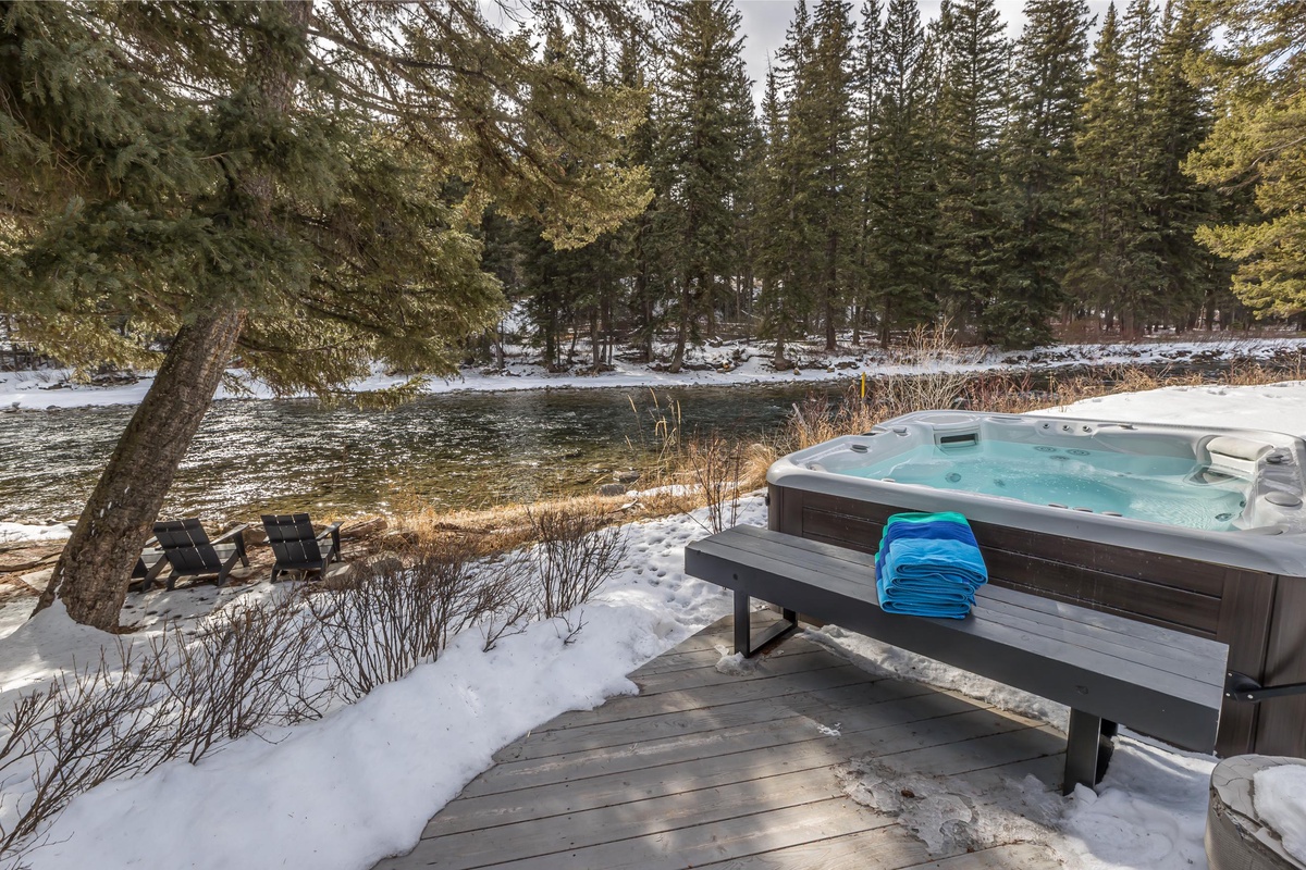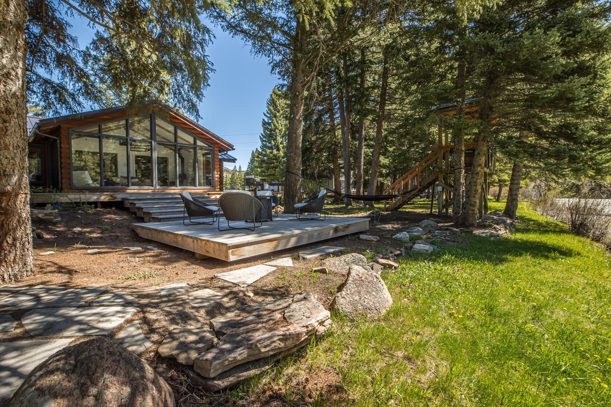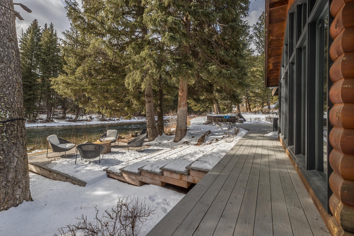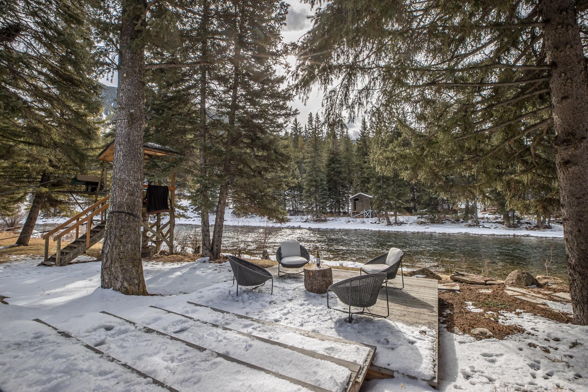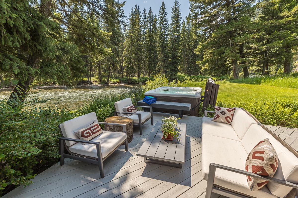 Sink into serenity at Riverbend Haven, a custom built riverfront estate on the Gallatin River in Big Sky. Spanning over seven acres, this expansive property boasts the Main House featuring three bedrooms and is complemented by a Guest House hosting two more bedrooms, sleeping 11 total guests throughout both houses. This unique property showcases sweeping mountain views and unbeatable riverfront access while also featuring luxe and thoughtful interior design and can host year-round fun for your group. In the warmer months, enjoy easy fishing access on the Gallatin River, nearby hiking & mountain biking, and proximity to Yellowstone National Park. In winter, Riverbend Haven is just a short drive to Big Sky Resort, offering world class skiing, snowboarding, and other winter activities.