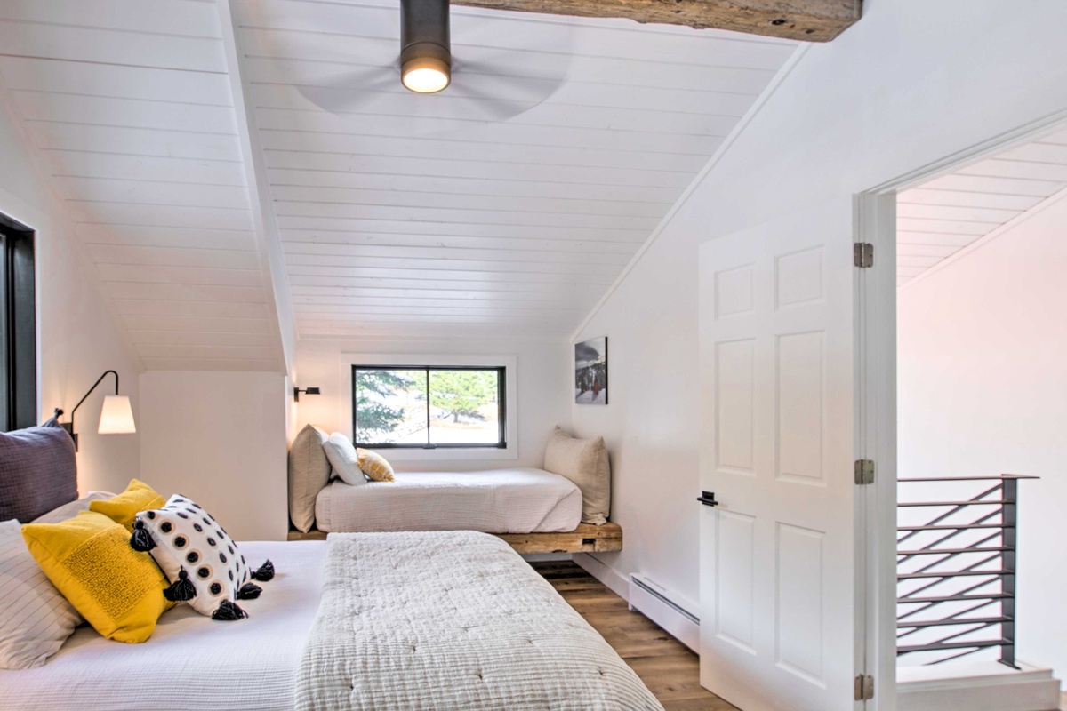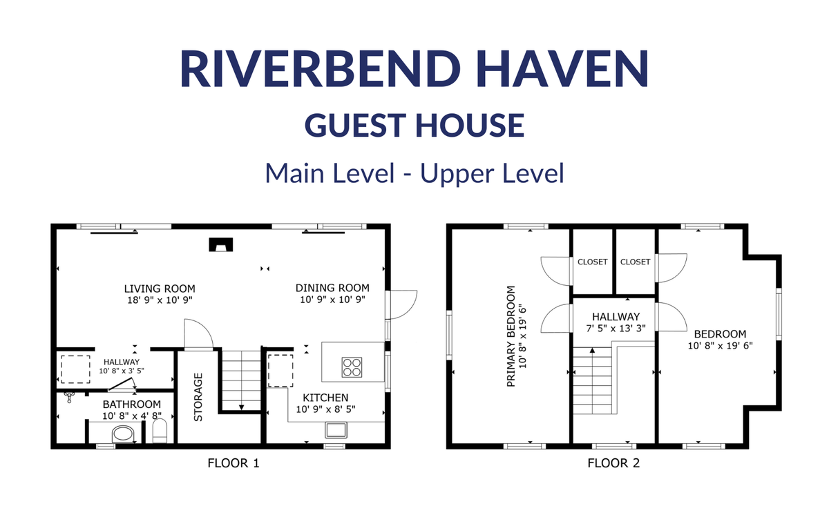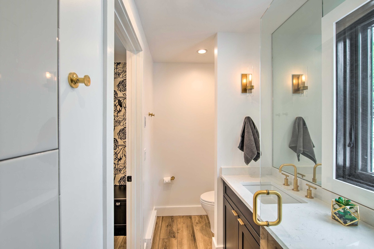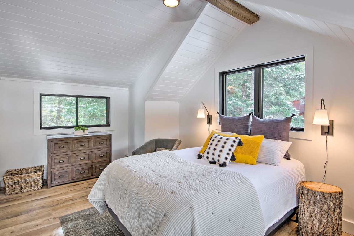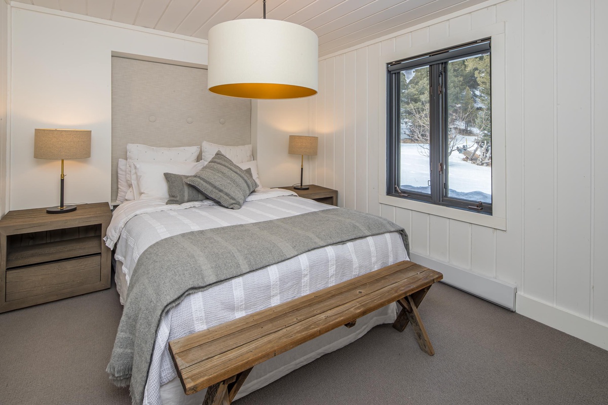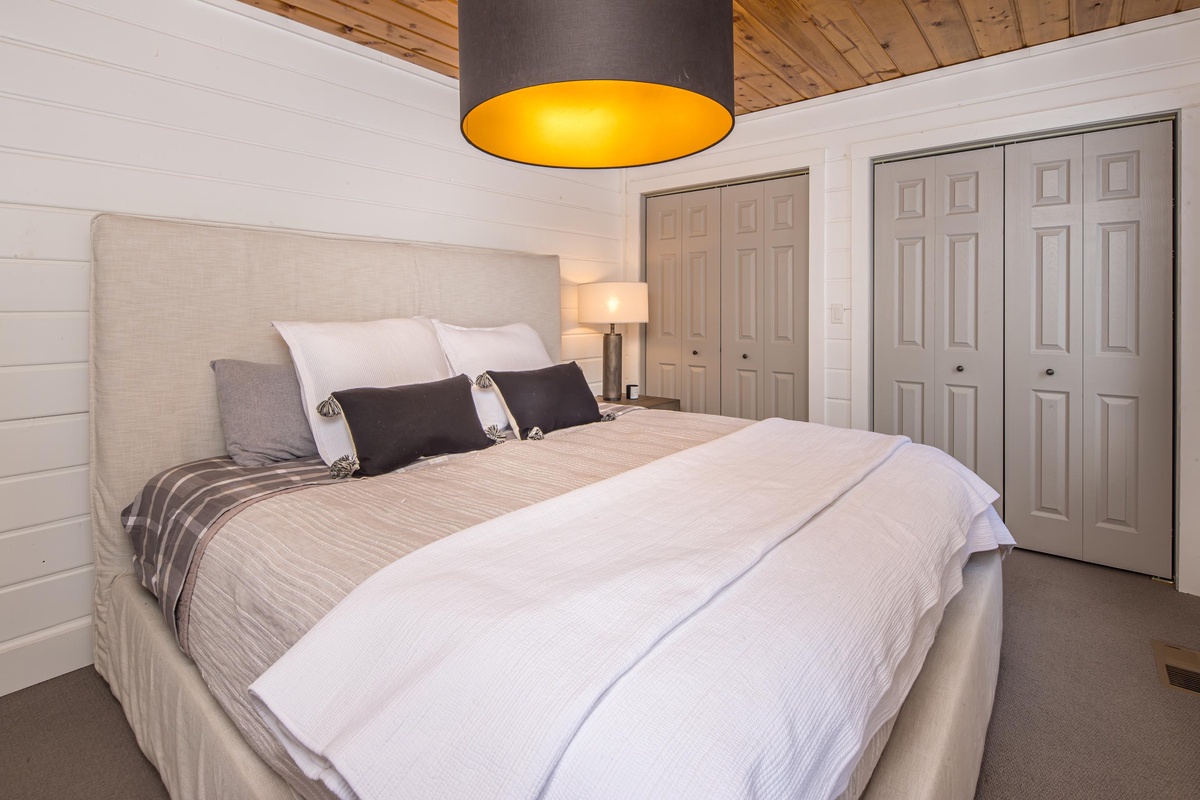 The Guest House hosts two additional spacious bedrooms that share a full bathroom located on the main level. Head upstairs to find a Queen Bedroom complete with high-end bedding, walk-in closet, and a desk for remote work with river views and another bedroom with a Queen bed and an additional Twin daybed for overflow sleeping.